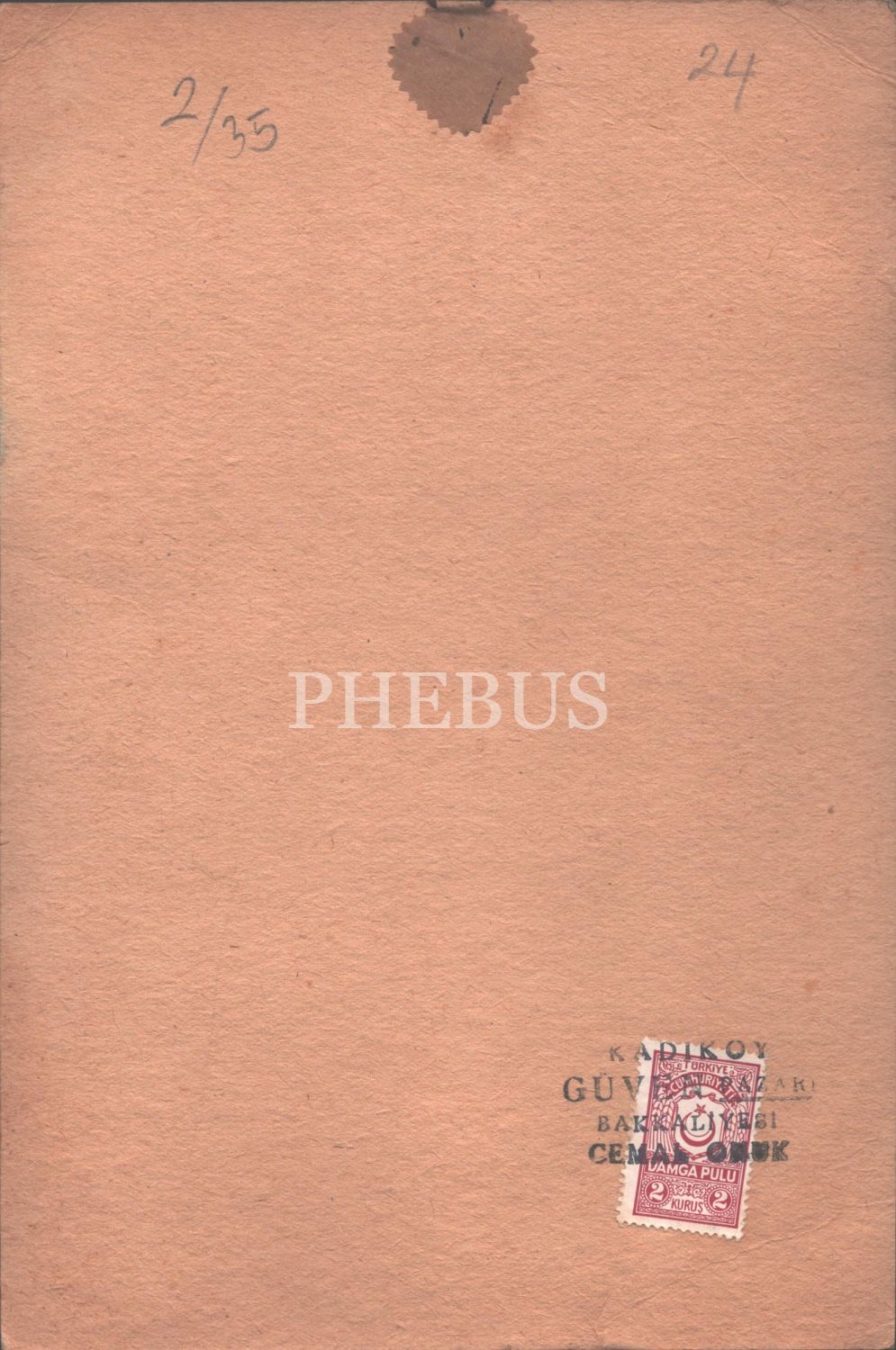 Arka yüzü işletme damgalı ve damga pullu.