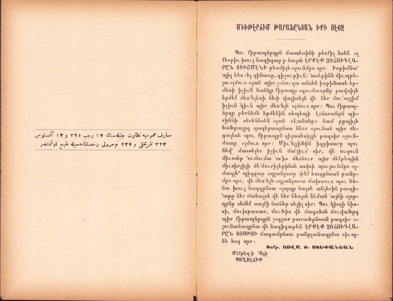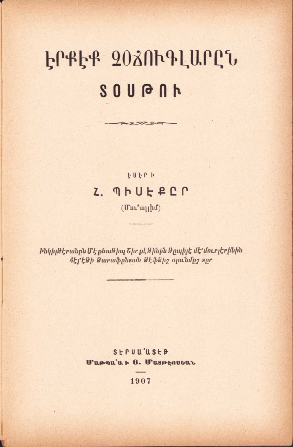 Ermenice kitap, 1907, 47 sayfa, 12x17 cm