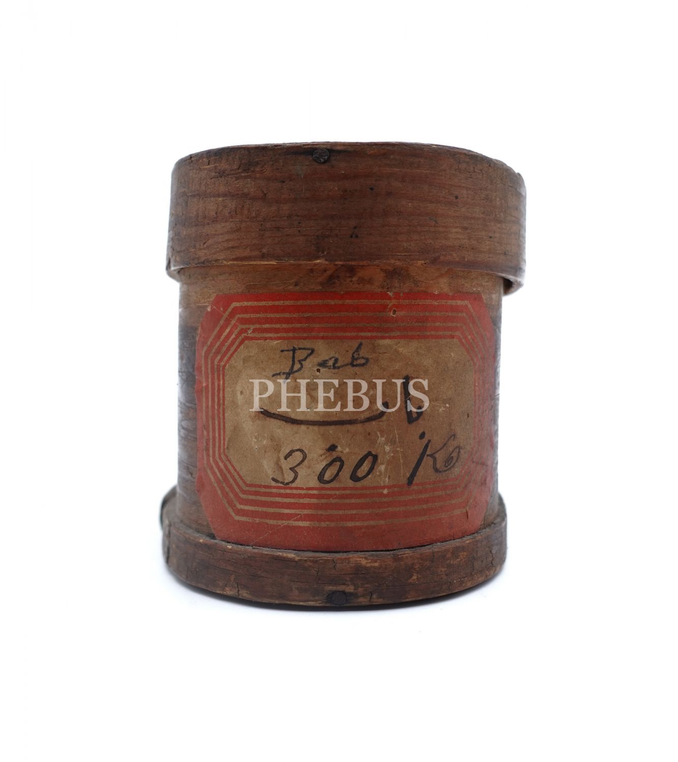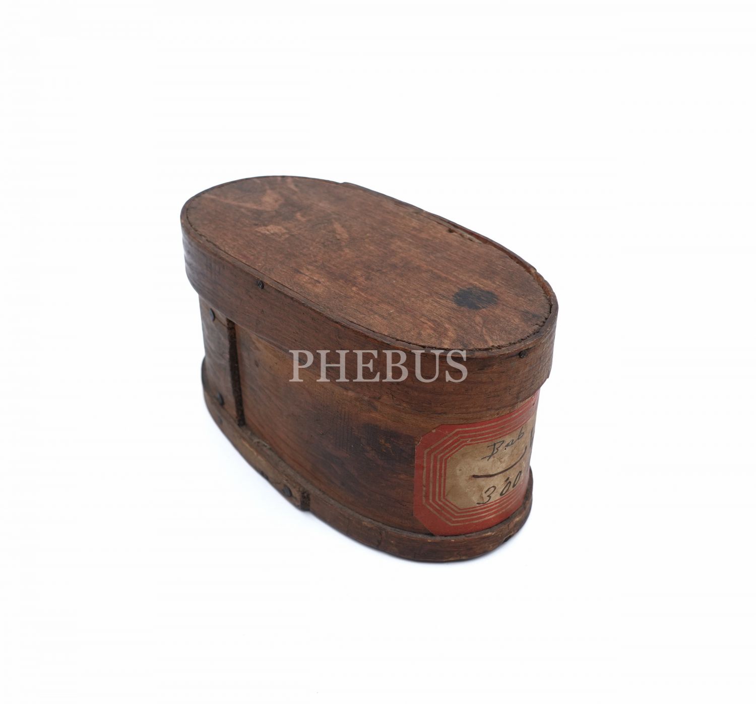 Ahşap baklava taşıma kutusu, sol kenarında üzerinde Osmanlıca "Bab" yazısı ve "300 K" ibaresi bulunan bir etiket mevcuttur, 17x8x8 cm...