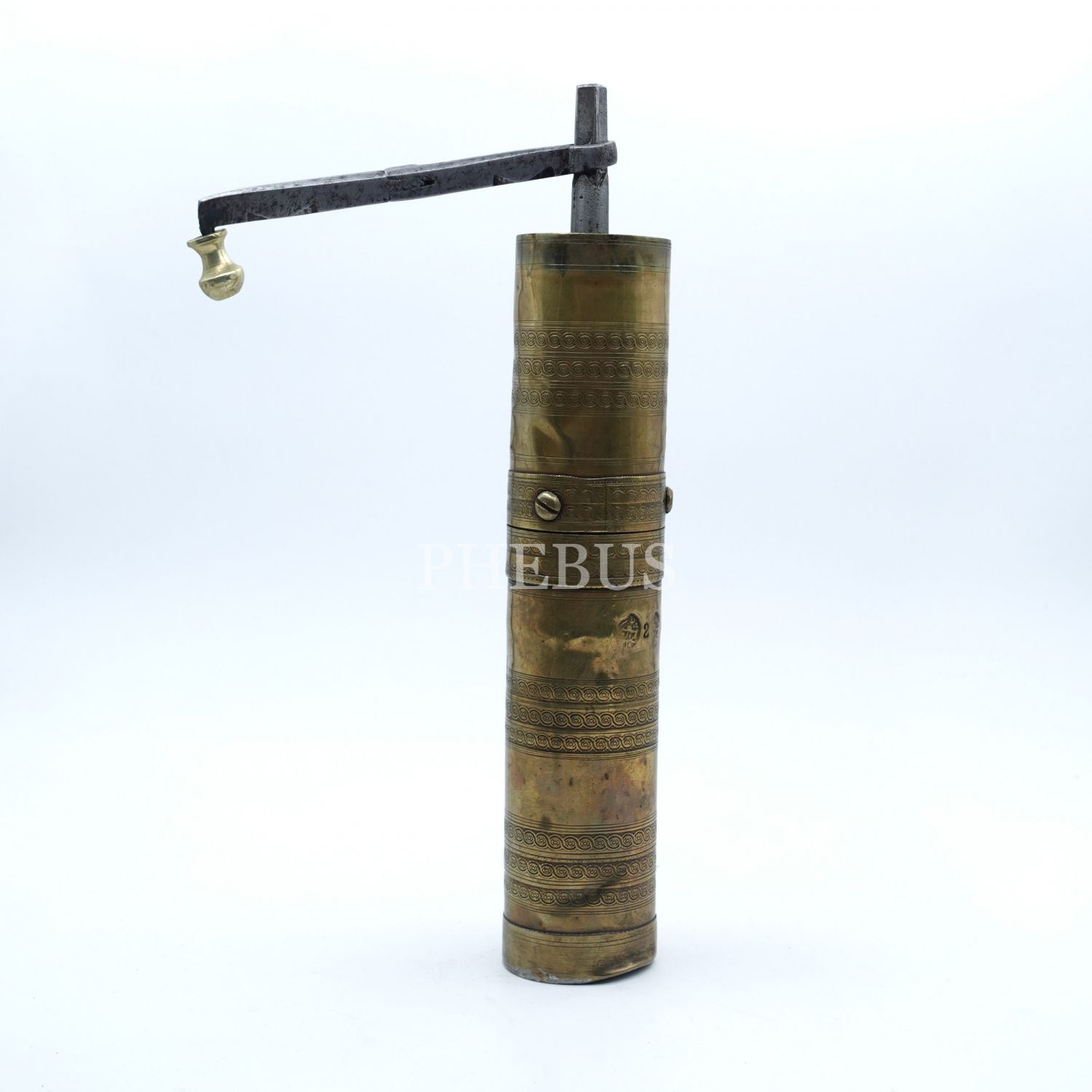Osmanlıca usta damgalı pirinç kahve değirmeni, 28x5 cm...