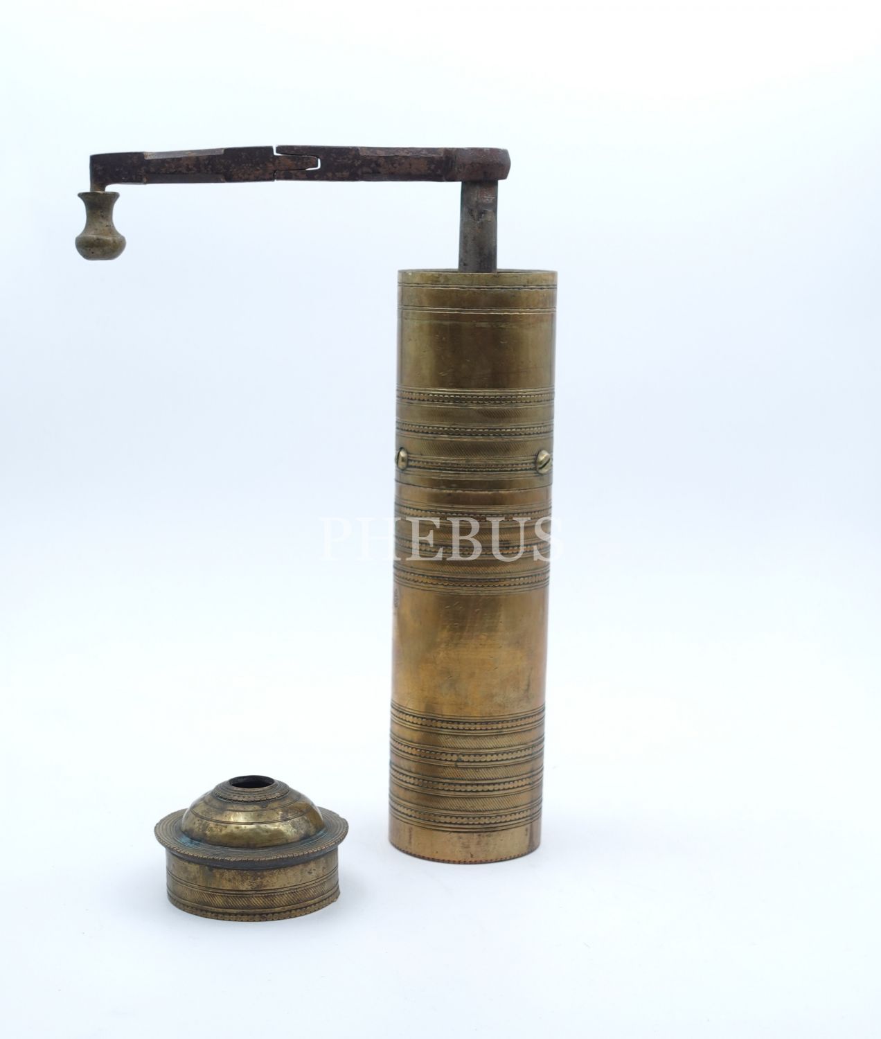 Osmanlıca damgalı pirinç kahve değirmeni, 27x6 cm...
