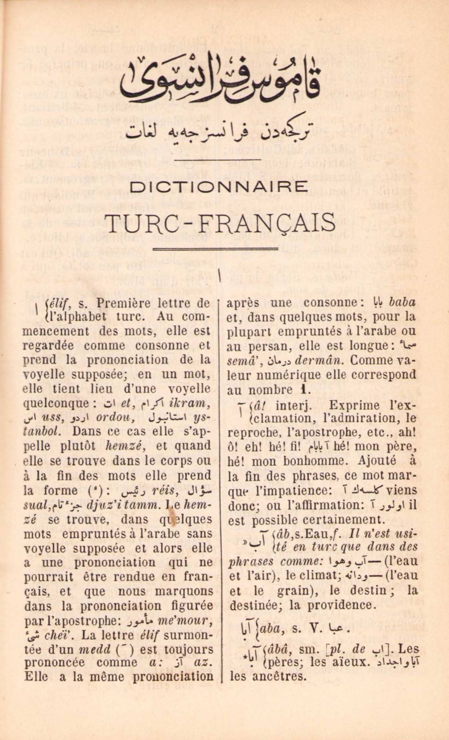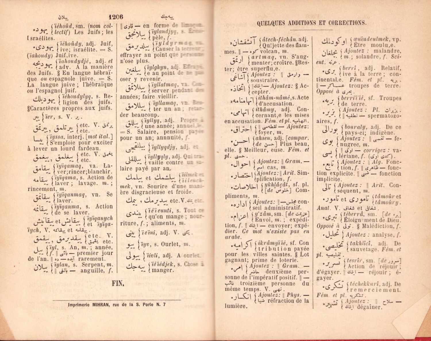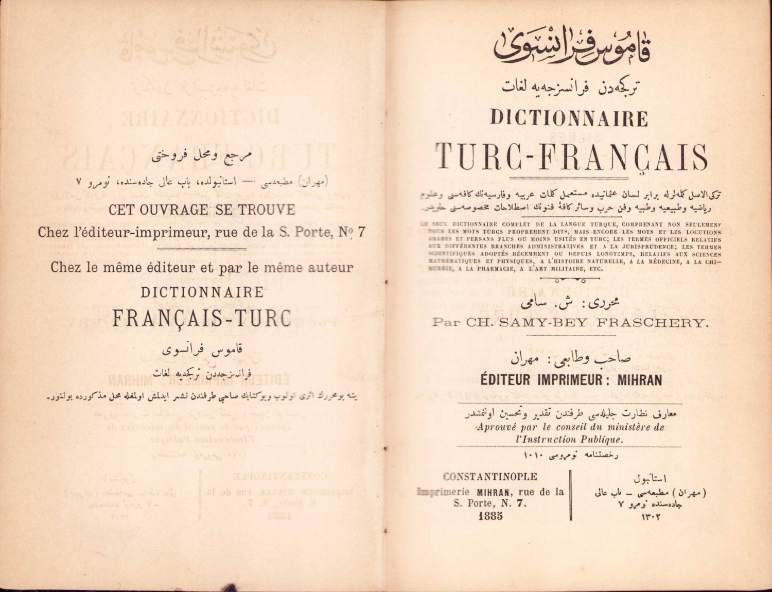 Osmanlıca - Fransızca Kamus-ı Fransevi, Şemsettin Sami, Mihran Matbaası, 1302, ön kapak kopuk sırt yok, 1206 sayfa, 12x18 cm