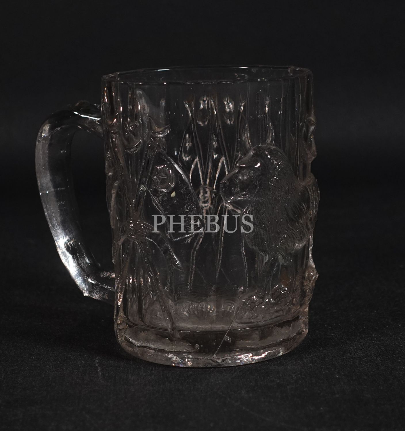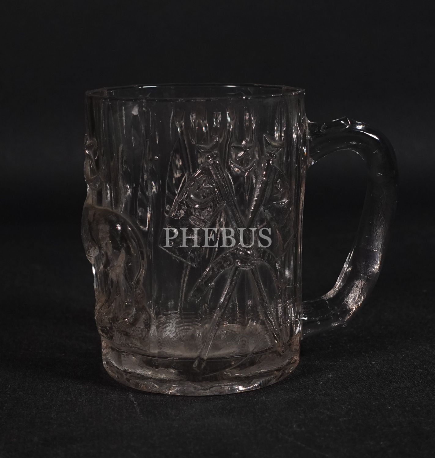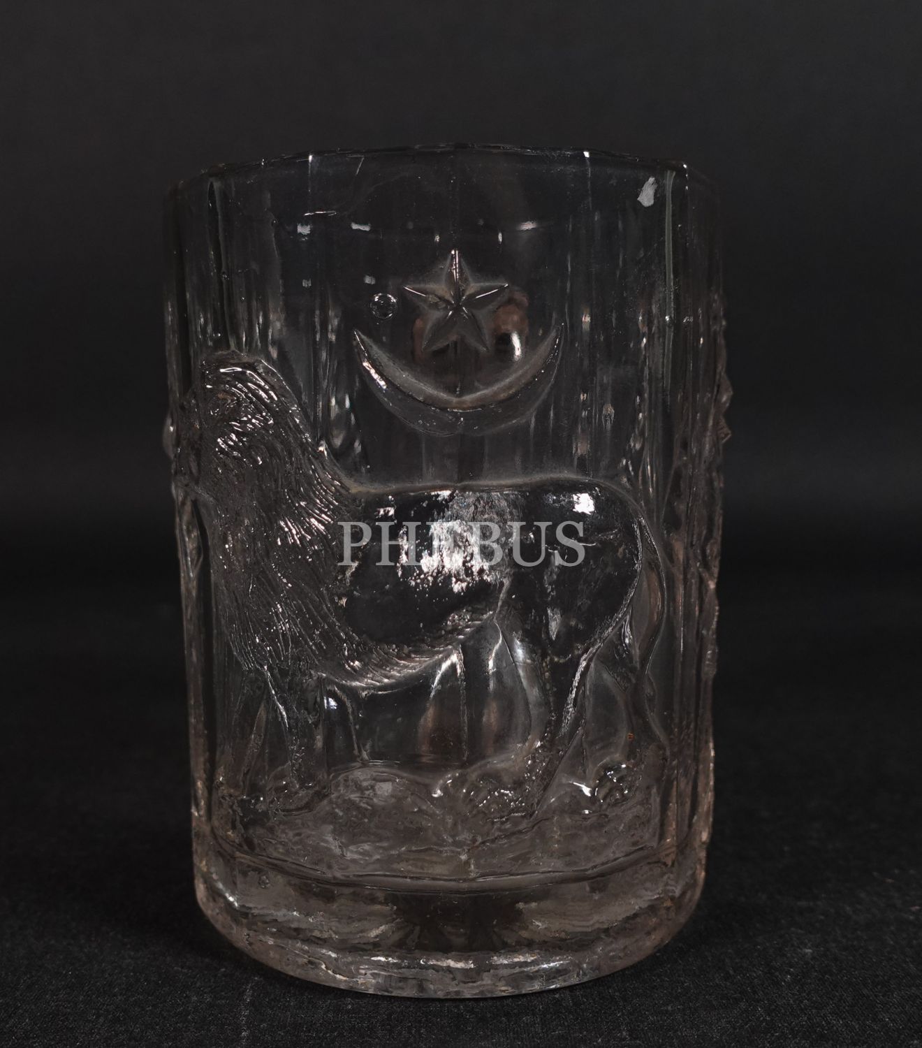 Türk bayrağı, ay yıldız ve arslan kabartmalı cam kupa, 13x10 cm