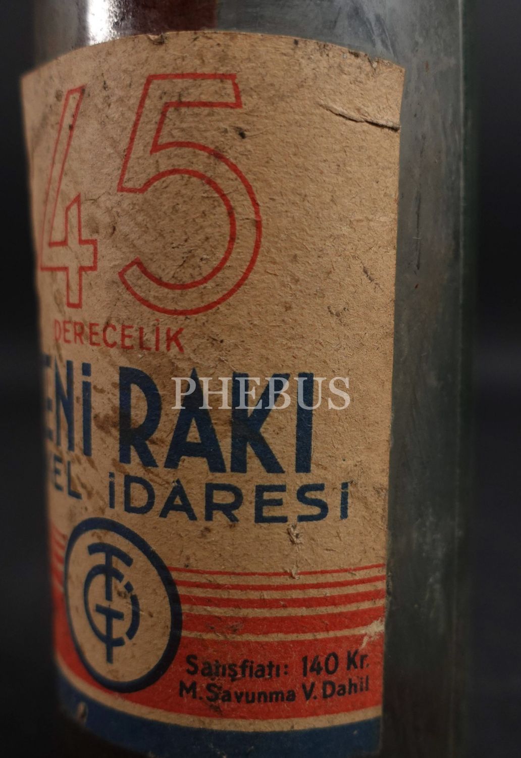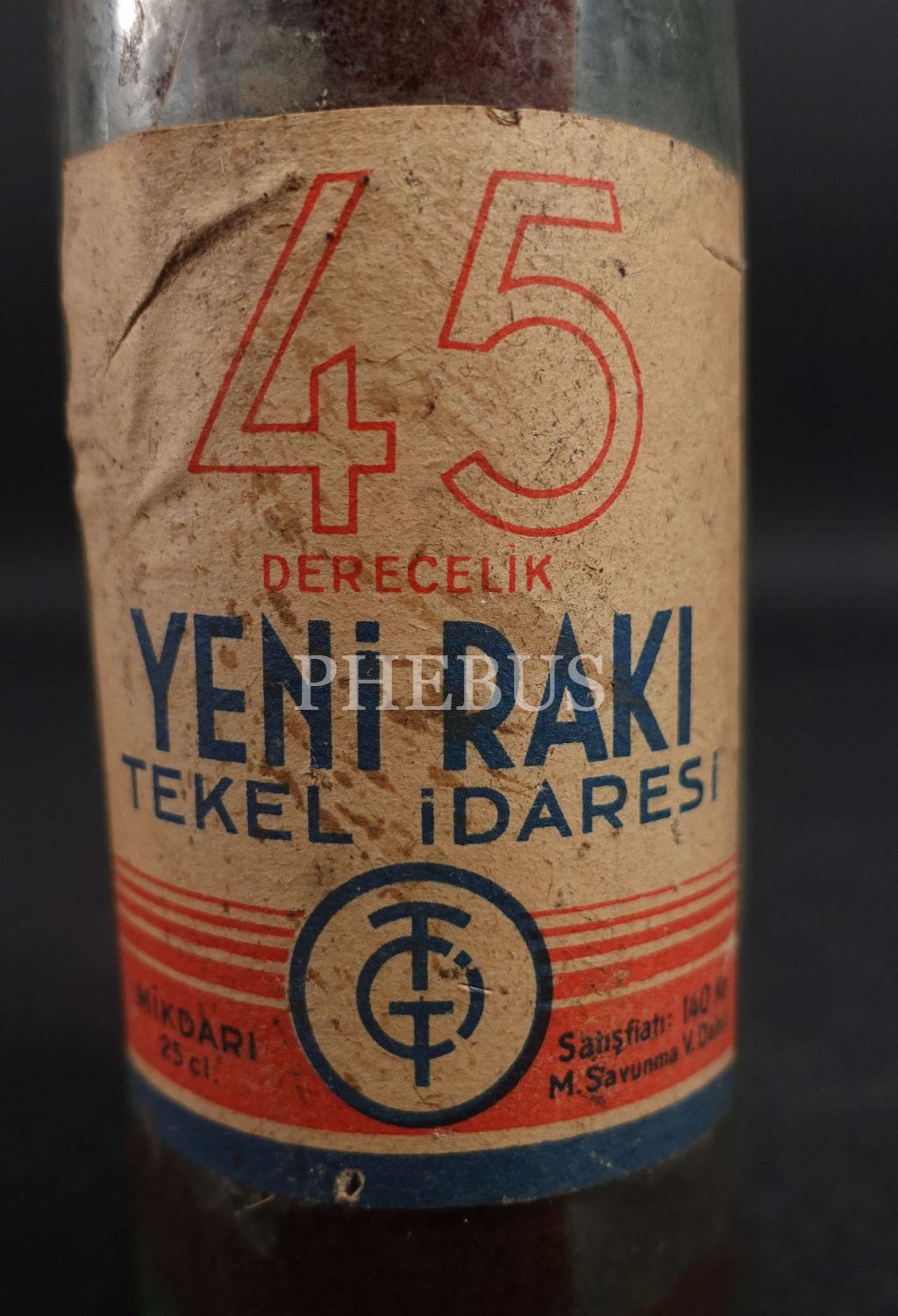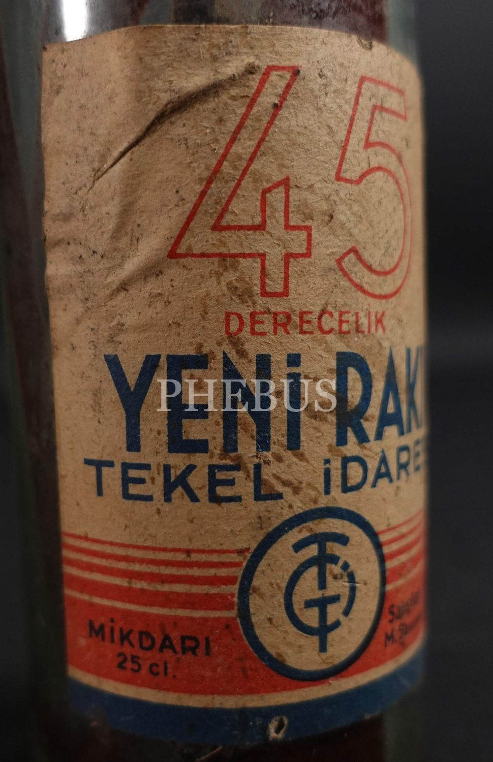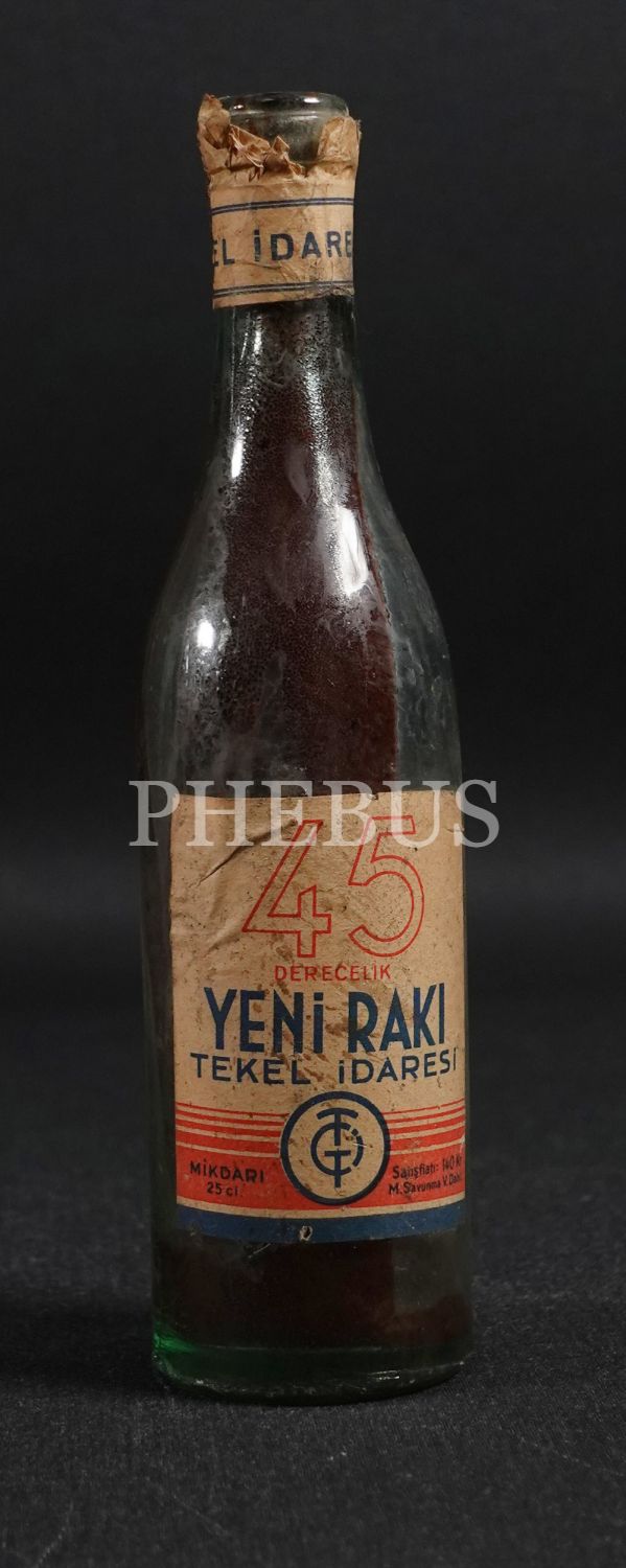 İnhisar kabartma yazılı "45 Derecelik" Yeni Rakı şişesi (25 cl.), Tekel İdaresi, 22x6 cm...