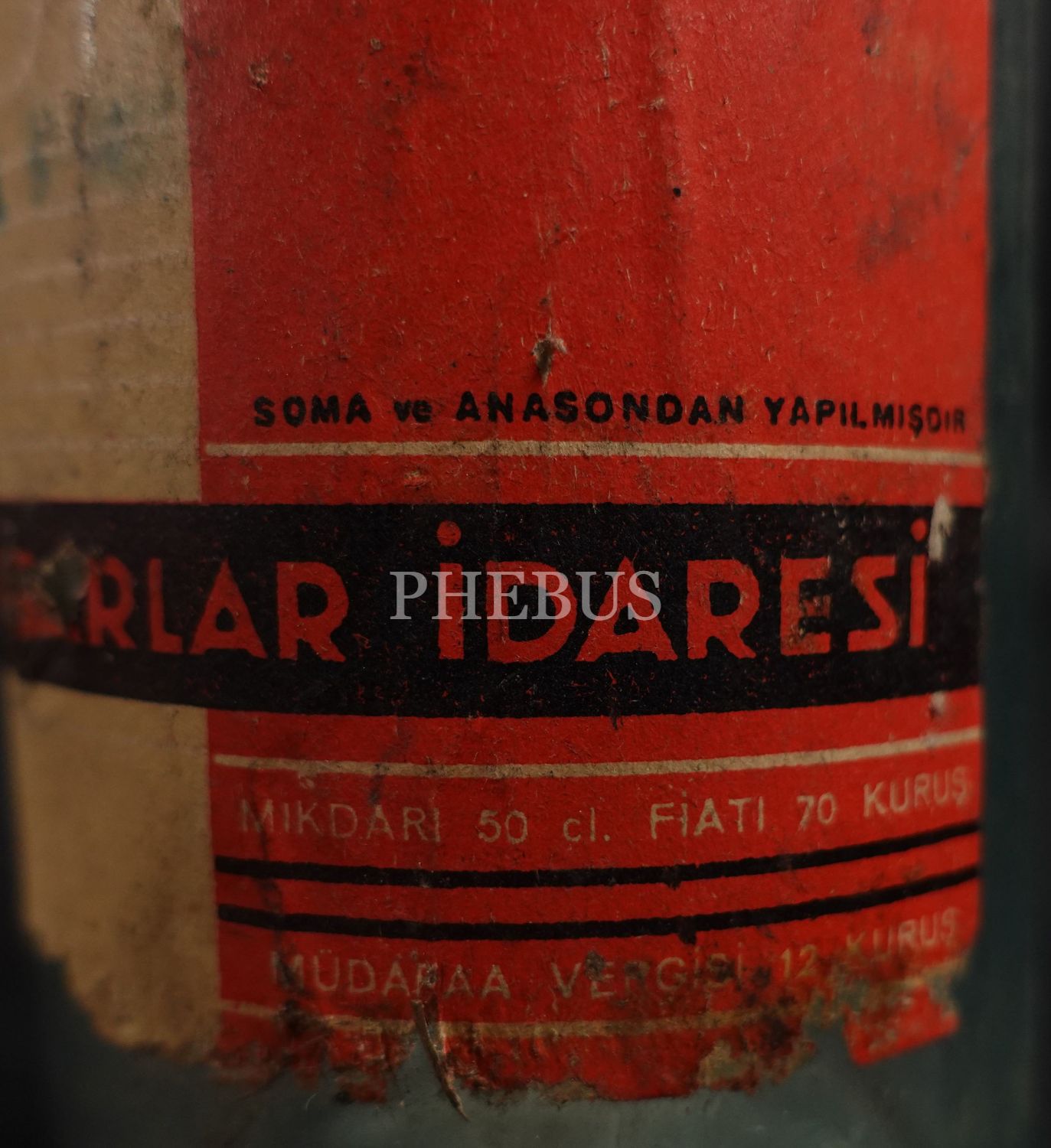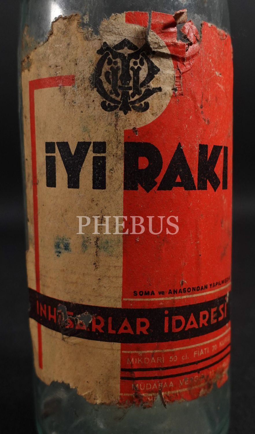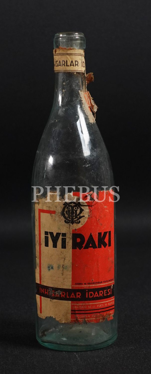 İnhisar kabartma yazılı İyi Rakı şişesi (50 cl.), İnhisarlar İdaresi, 1934 üretimi, 26x7 cm...