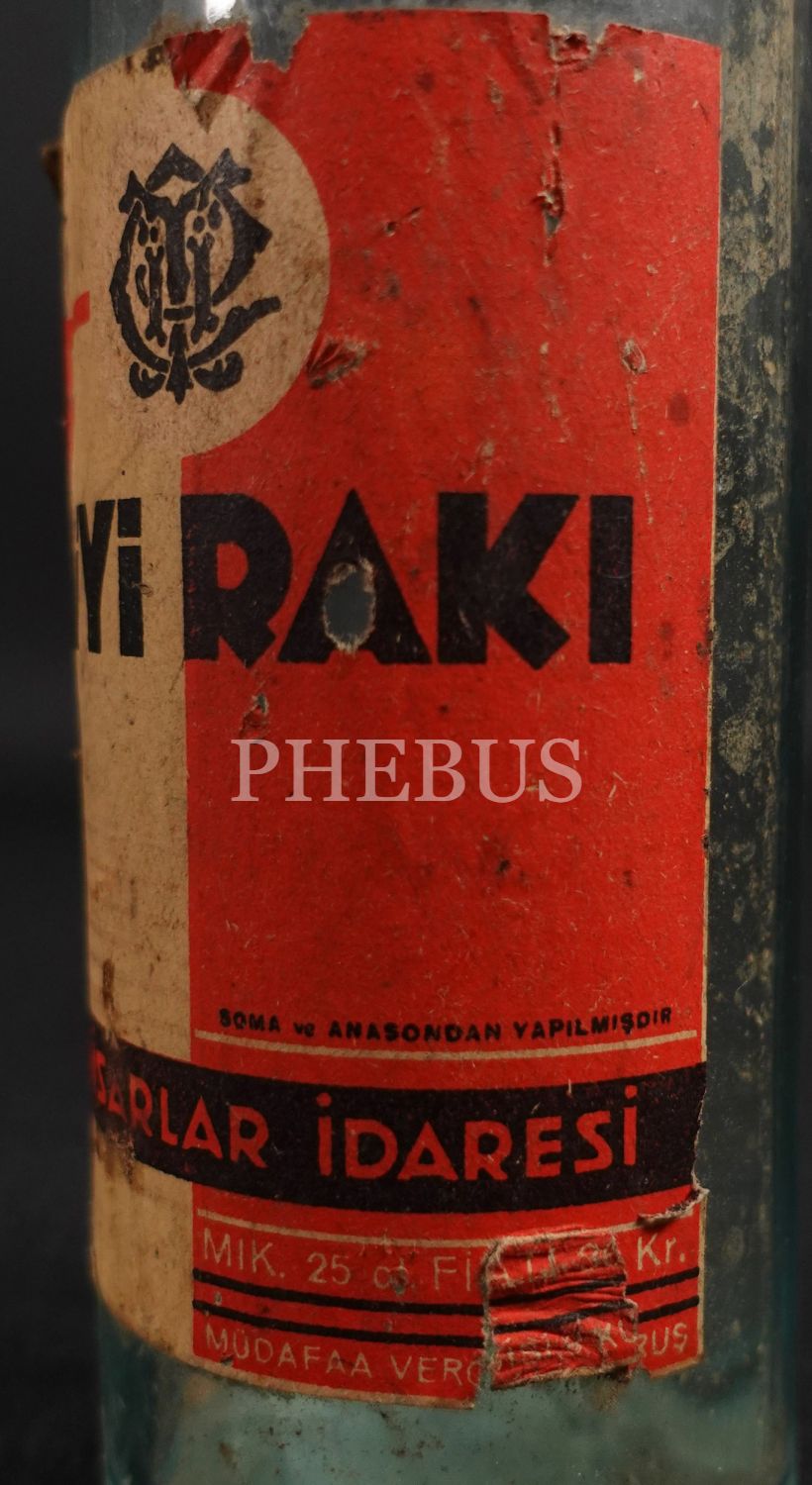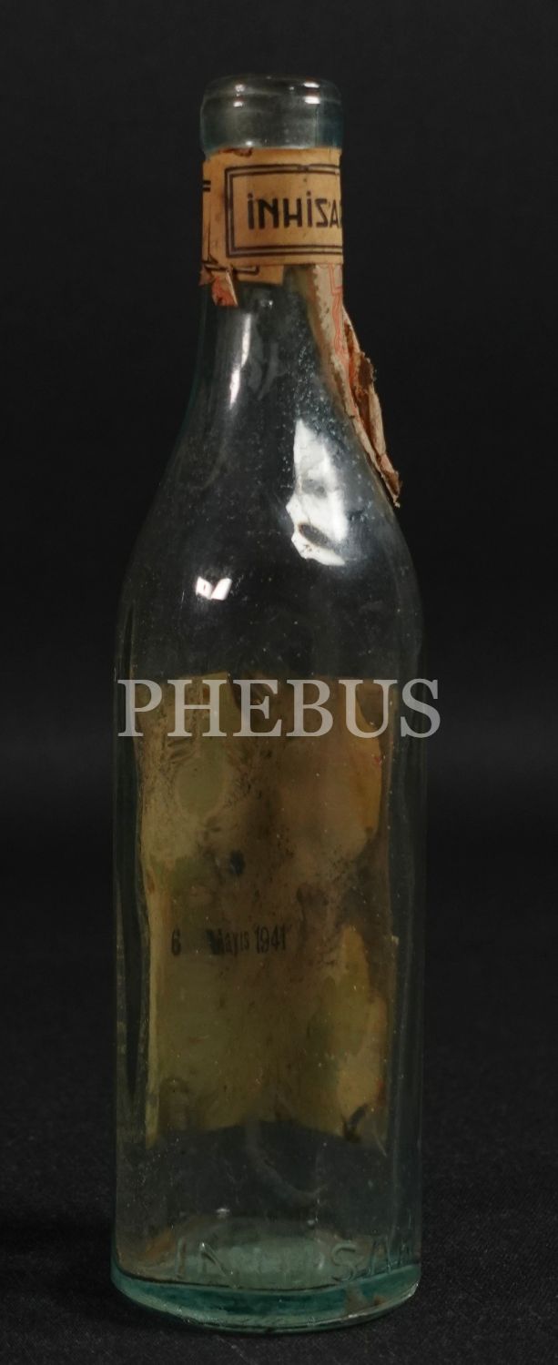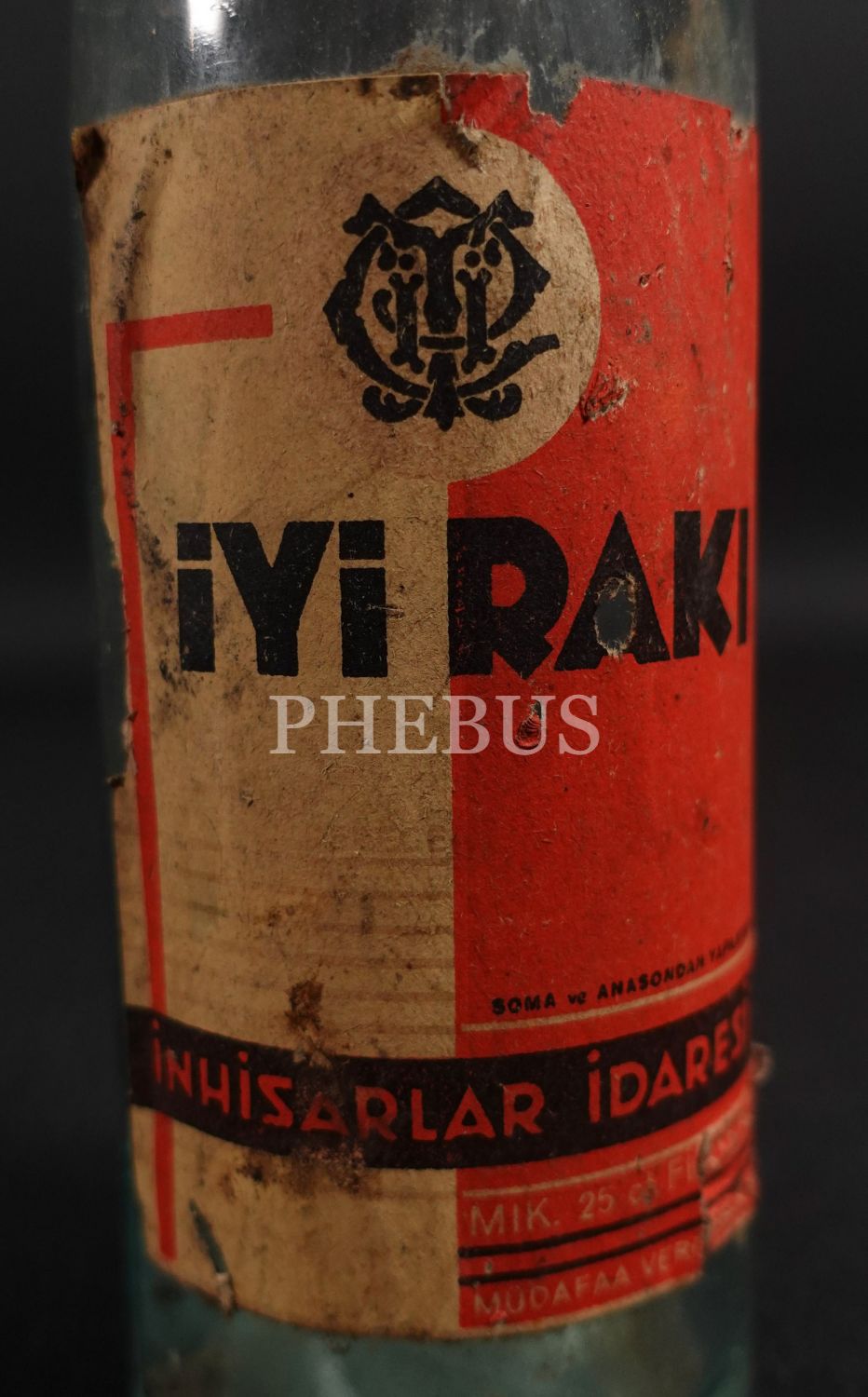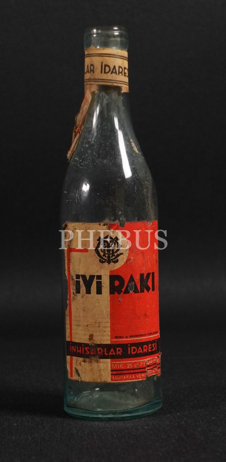 İnhisar kabartma yazılı İyi Rakı şişesi (25 cl.), İnhisarlar İdaresi, 1934 üretimi, 22x6 cm...