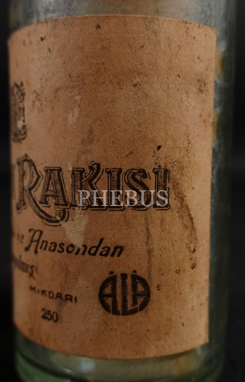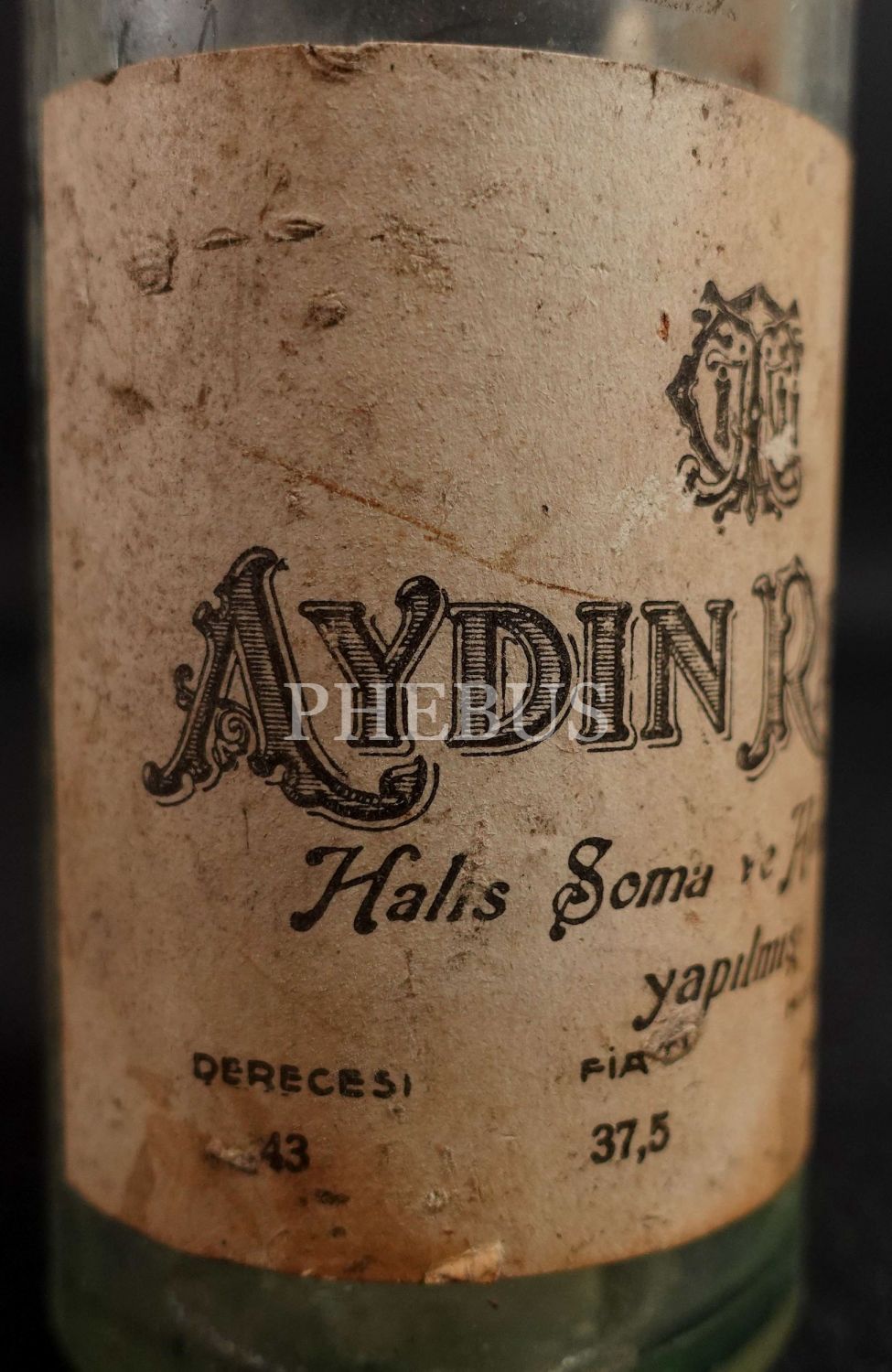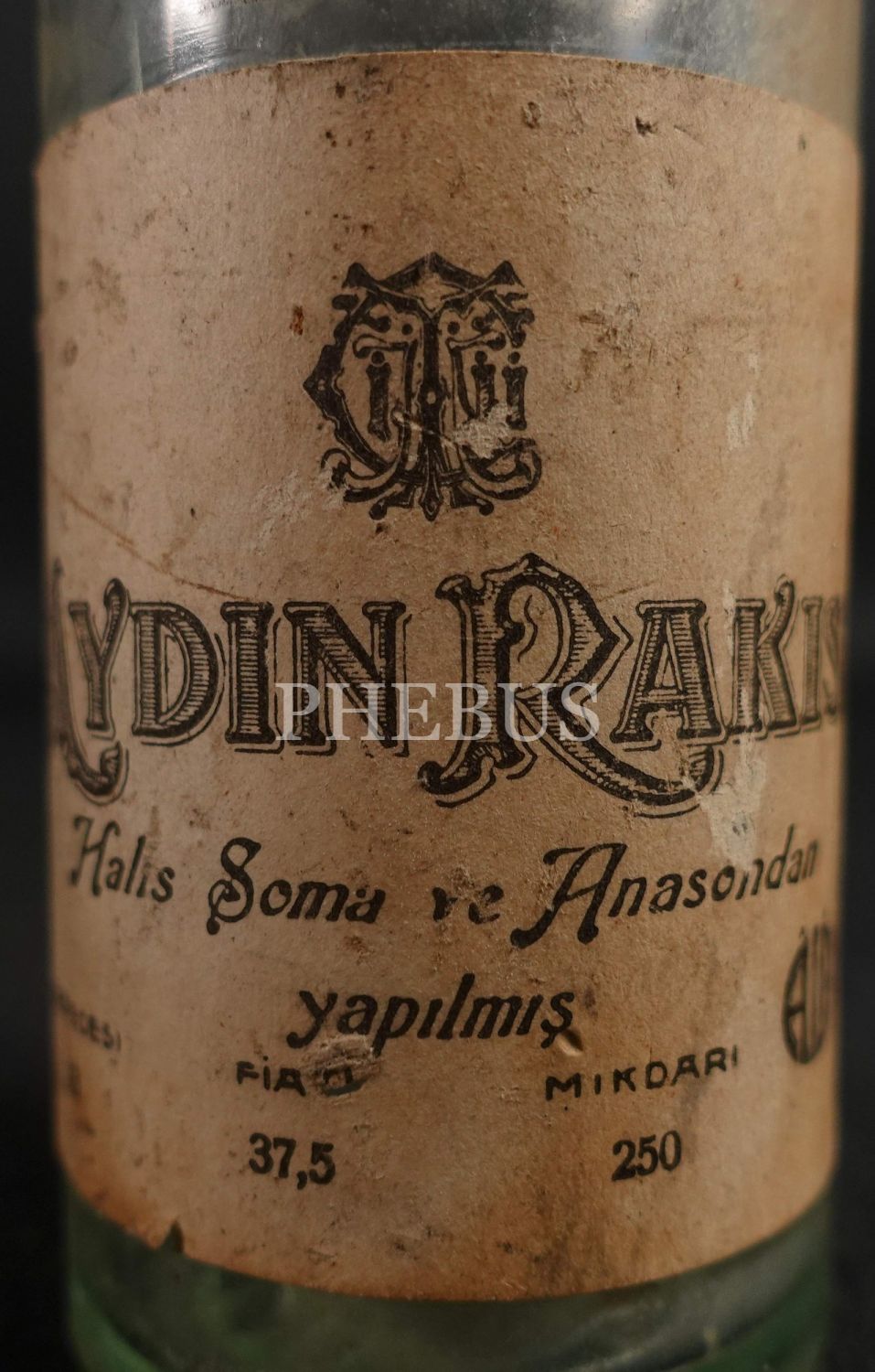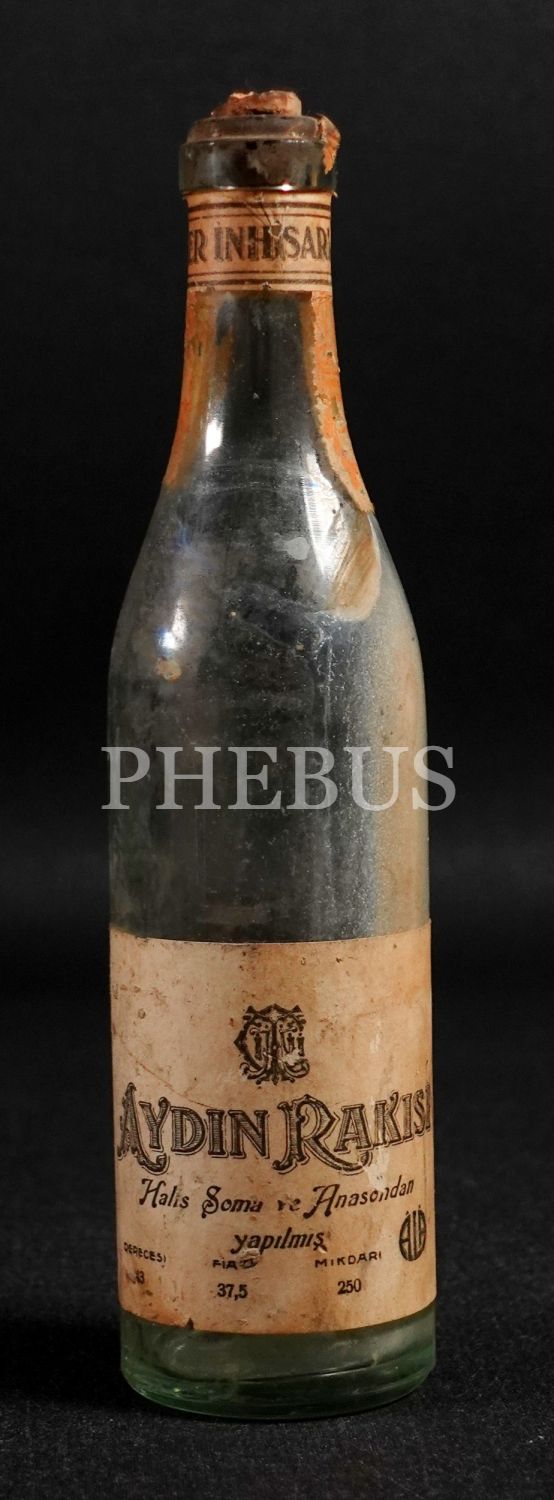 İnhisar kabartma yazılı "Halis Şoma ve Anasondan Yapılmış" Aydın Rakısı şişesi (25 cl.), 1934 üretimi, 22x6 cm...