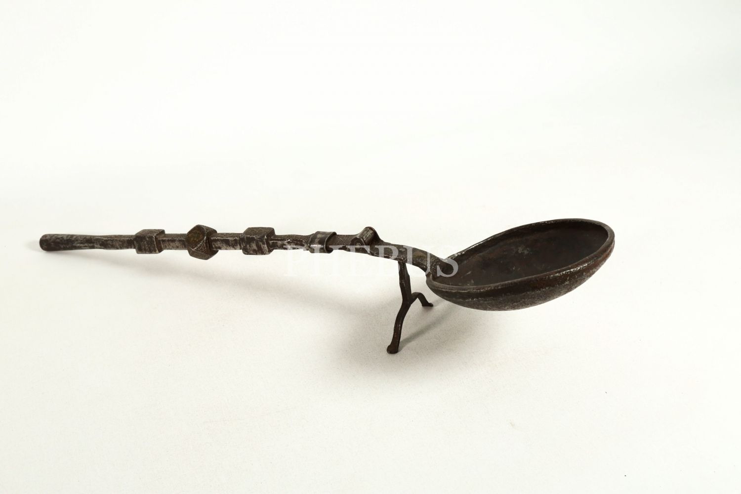Osmanlı döneminden baş kısmı katlanır düzenekli, tutamağı kalem işçilikli ayaklı bakır kahve kavurma tavası, 45x10 cm...