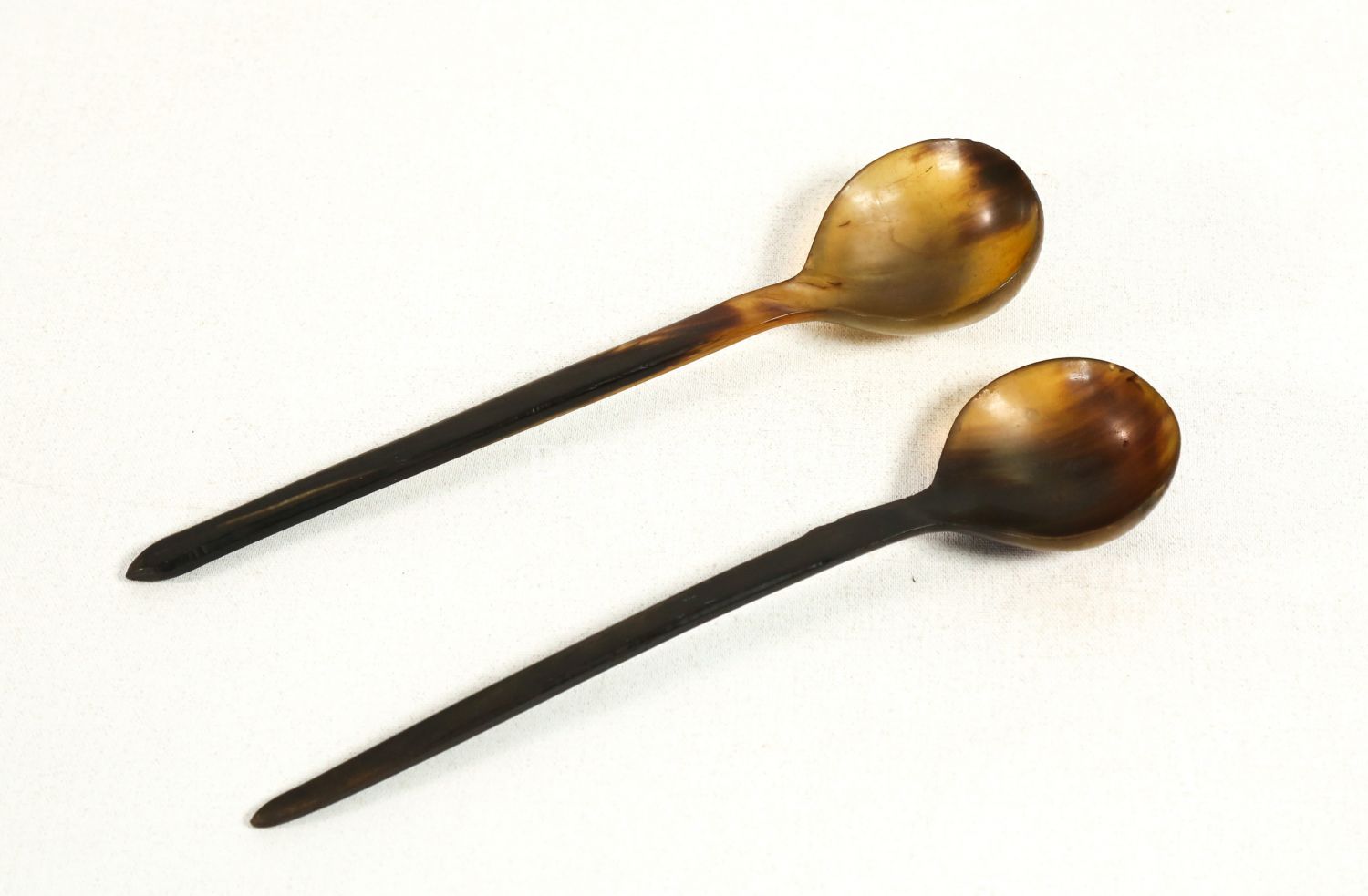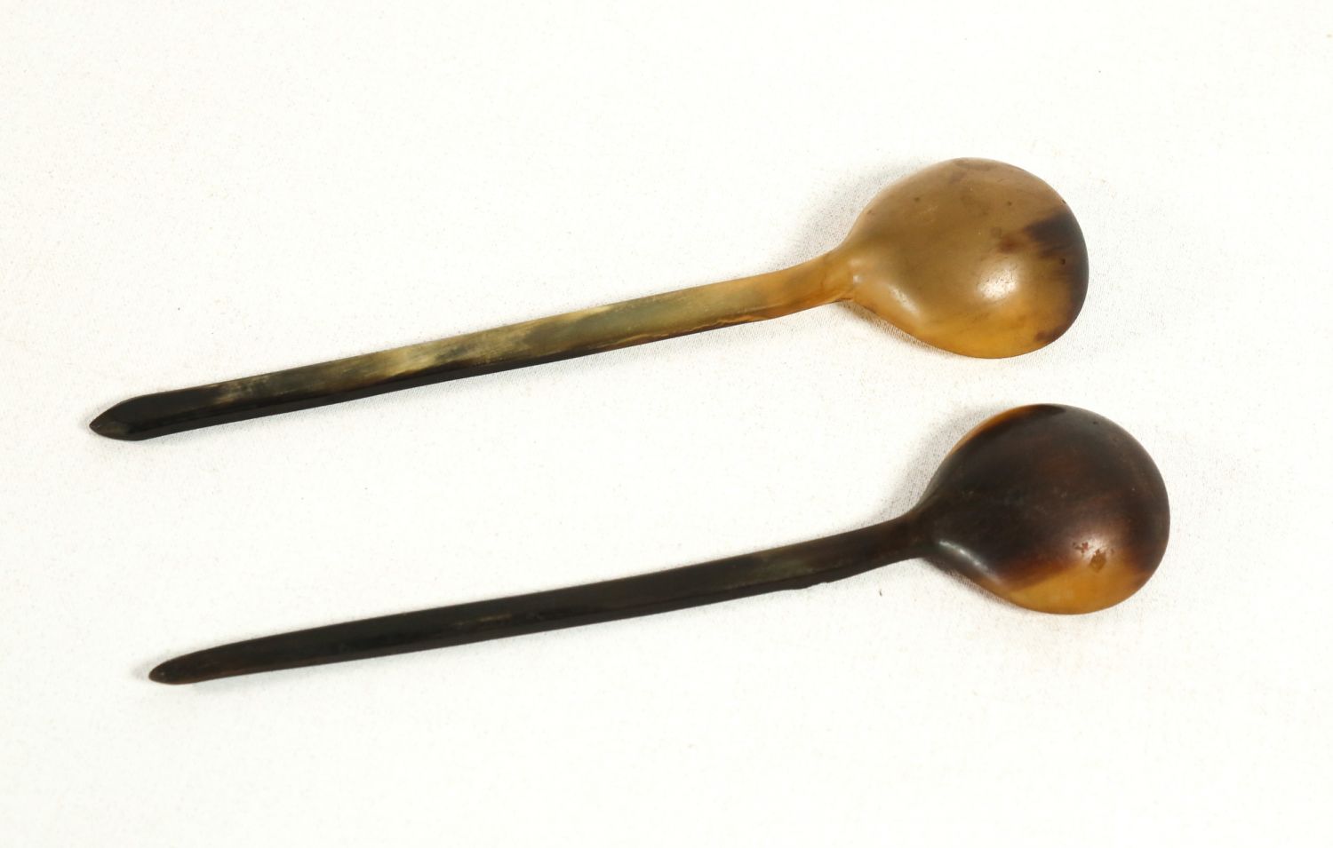 Osmanlı döneminden kemik ve bağa karışımı bir çift hoşaf kaşığı, 25x6 cm...