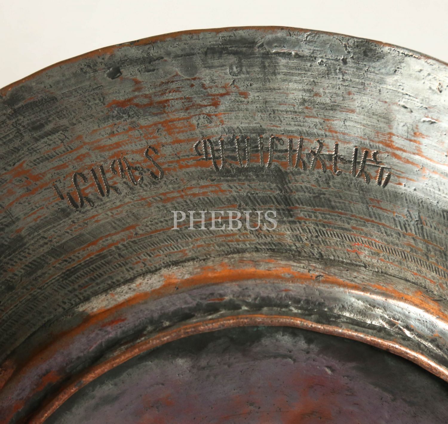 Osmanlı döneminden Ermenice "Garabed Basmacıyan" yazılı bakır tabak, çap 28 cm...