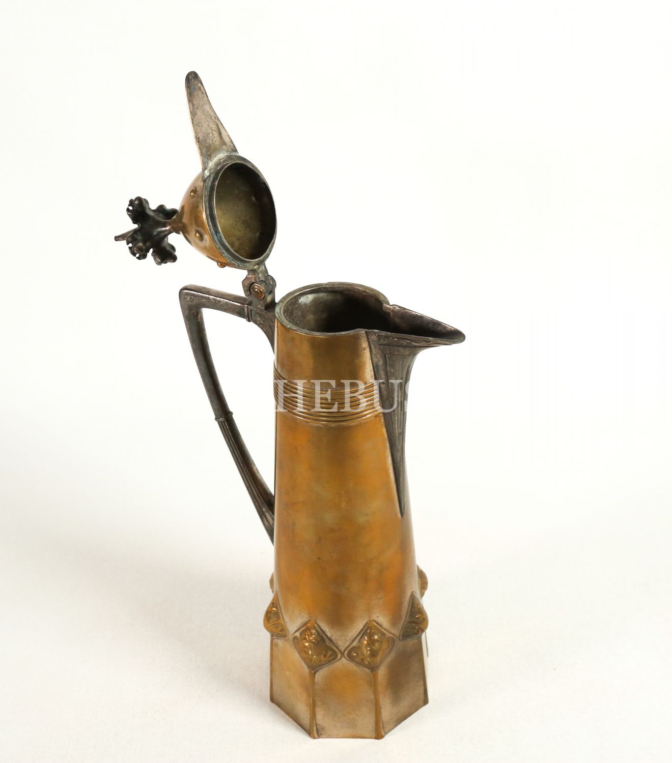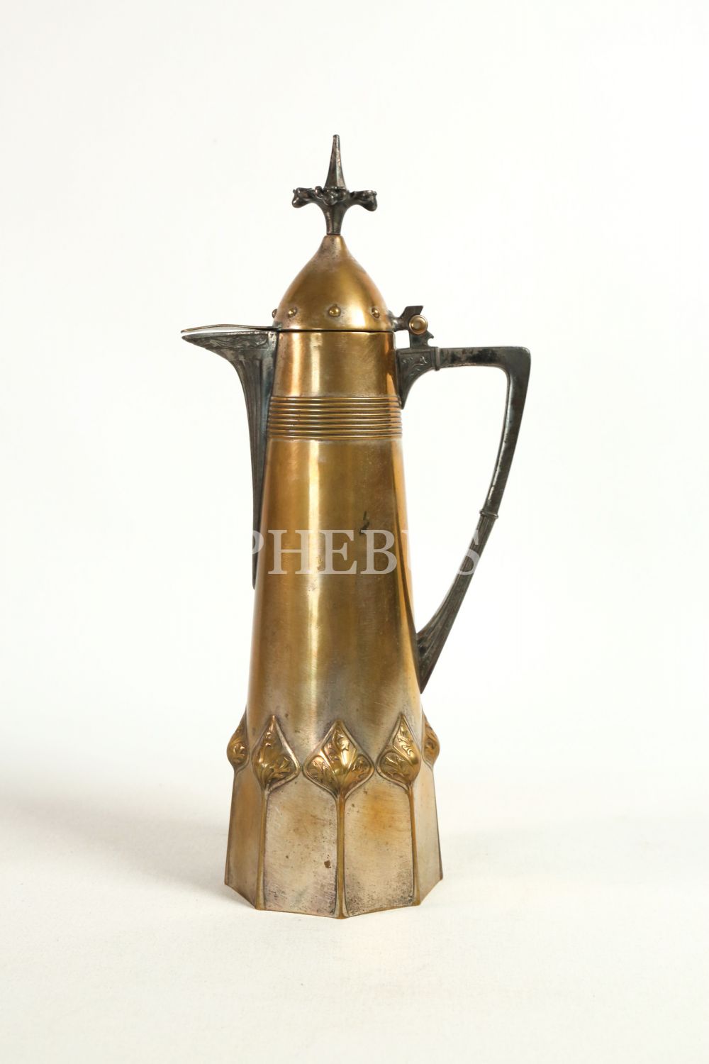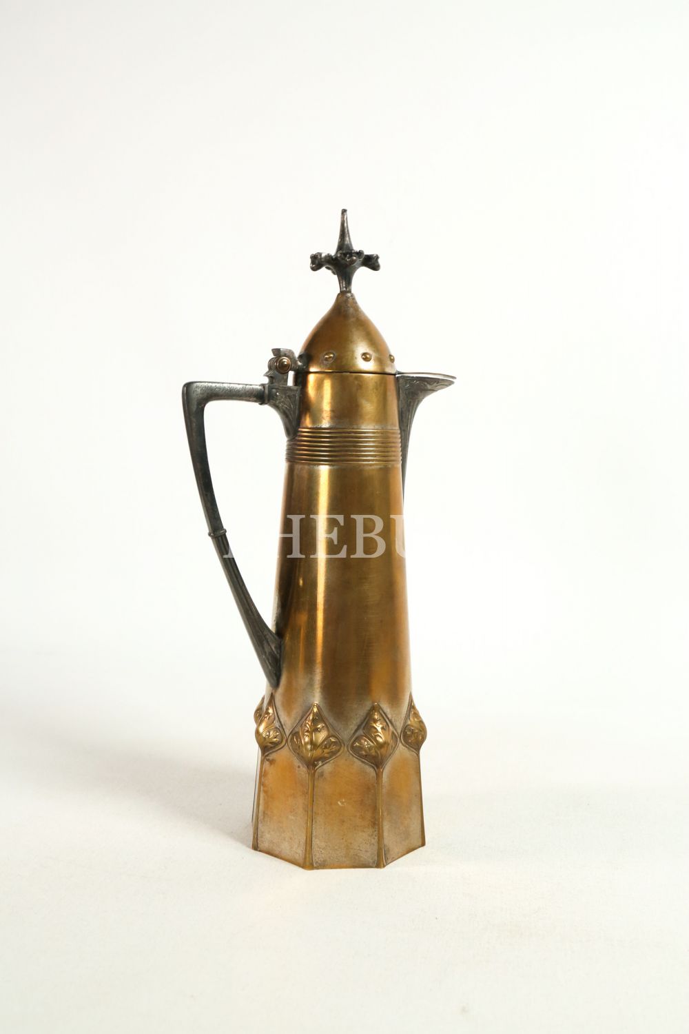 Osmanlı döneminden pirinç kaplama, zarif dekorlu sürahi, 40x11 cm...