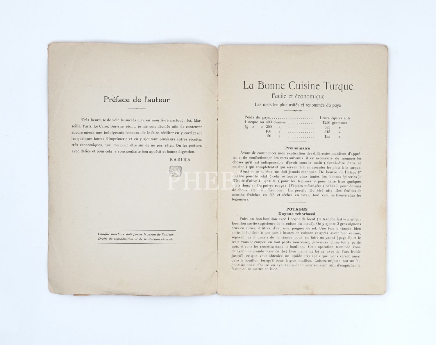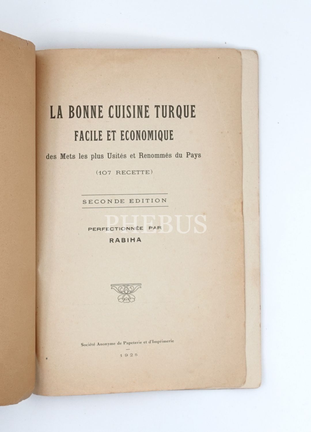 LA BONNE CUISINE TURQUE FACILE ET ECONOMIQUE (İyi, Kolay, Ekonomik Türk Mutfağı), "Rabiha" Edhem Hanım, 1925, Asmalımescid, İstanbul, 29 sayfa, 17x24 cm...