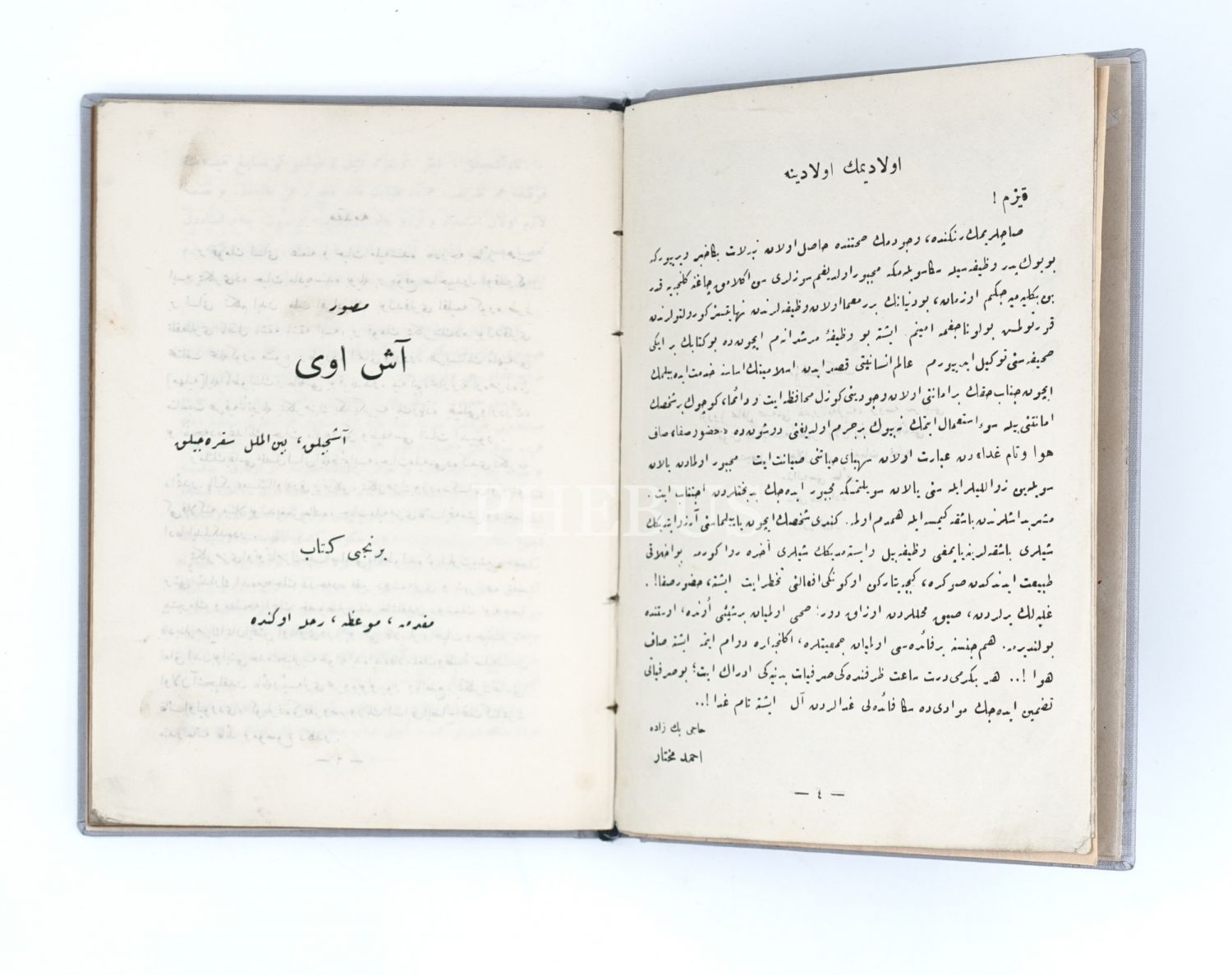 AŞEVİ: NAZARİ AŞÇILIK VE SOFRACILIK, Hacıbeyzade Ahmed Muhtar, Matbaa-i Osmaniye, İstanbul, 14x20 cm...