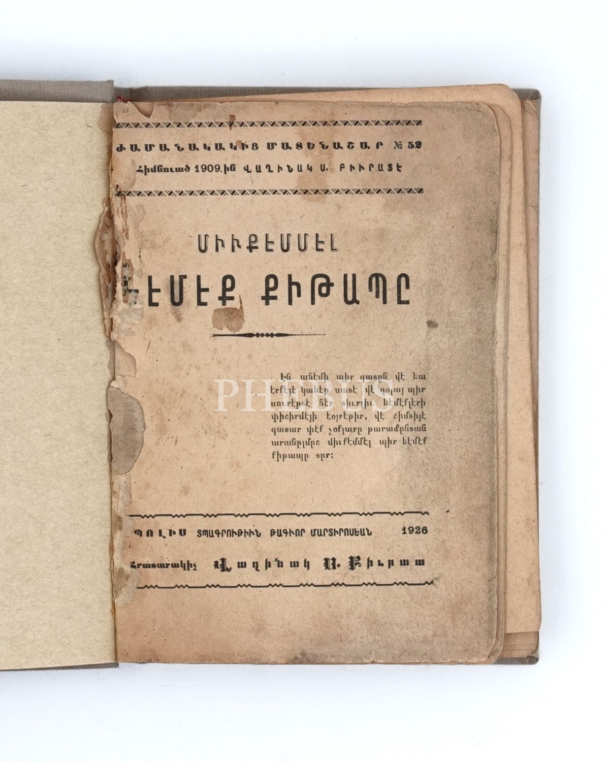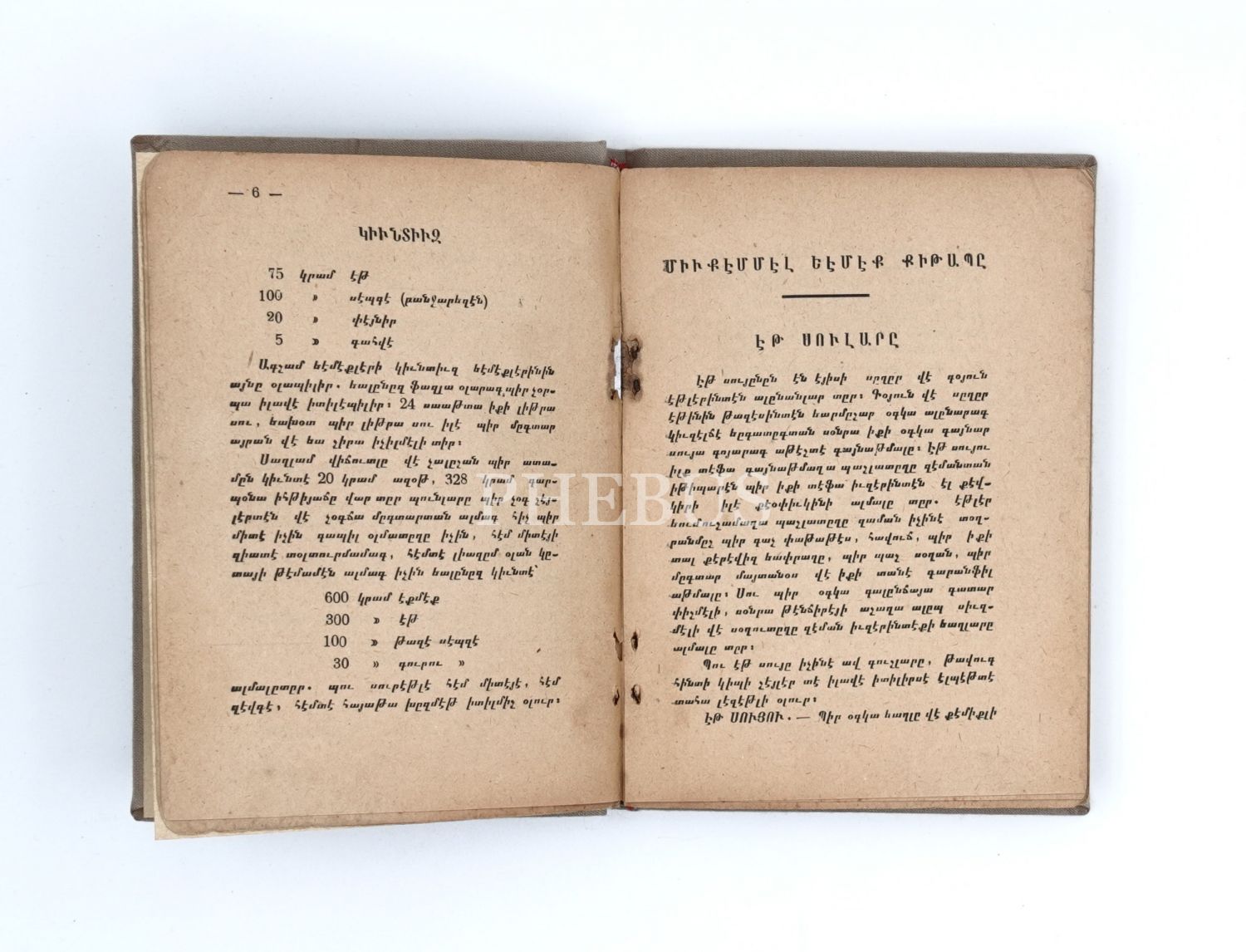 Ermeni harfli Türkçe MÜKEMMEL YEMEK KİTABI, Takvor Mardirosyan, 1926, Takvor Mardirosyan Matbaası, İstanbul, 13x17 cm...