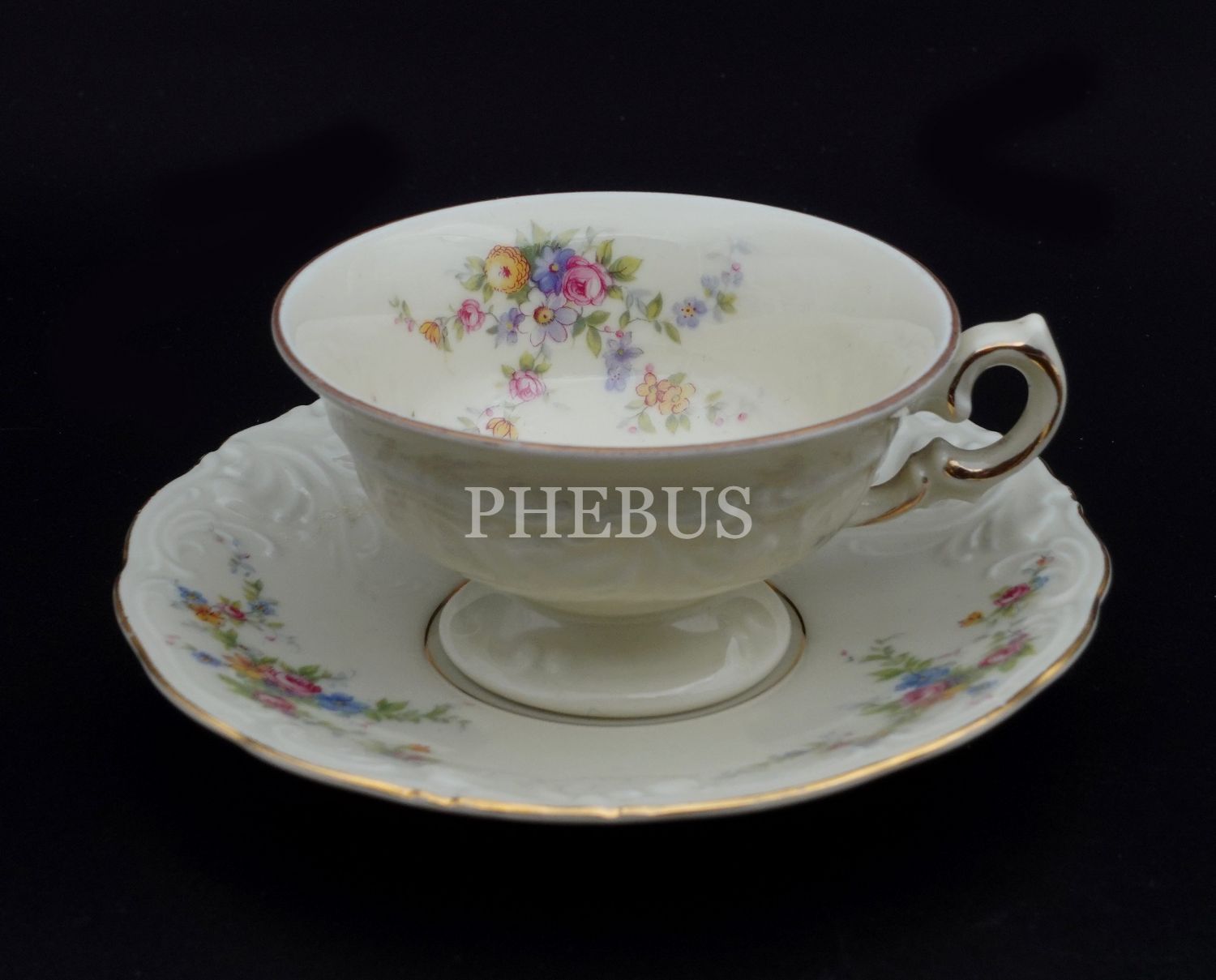 Fincan ve tabağın üzeri floral desenler ile süslenmiştir..