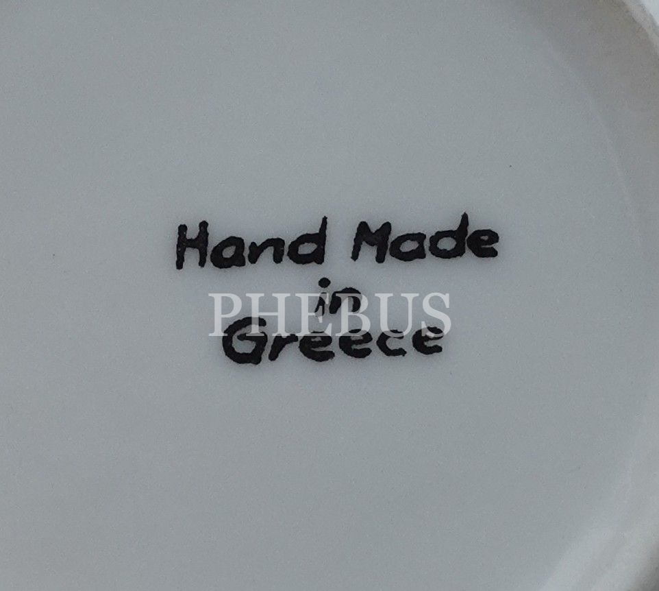 Hand Made In Greece damgalı porselen fincan, fincan çapı 4 cm, yüksekliği 4 cm, tabak çapı 10 cm...
