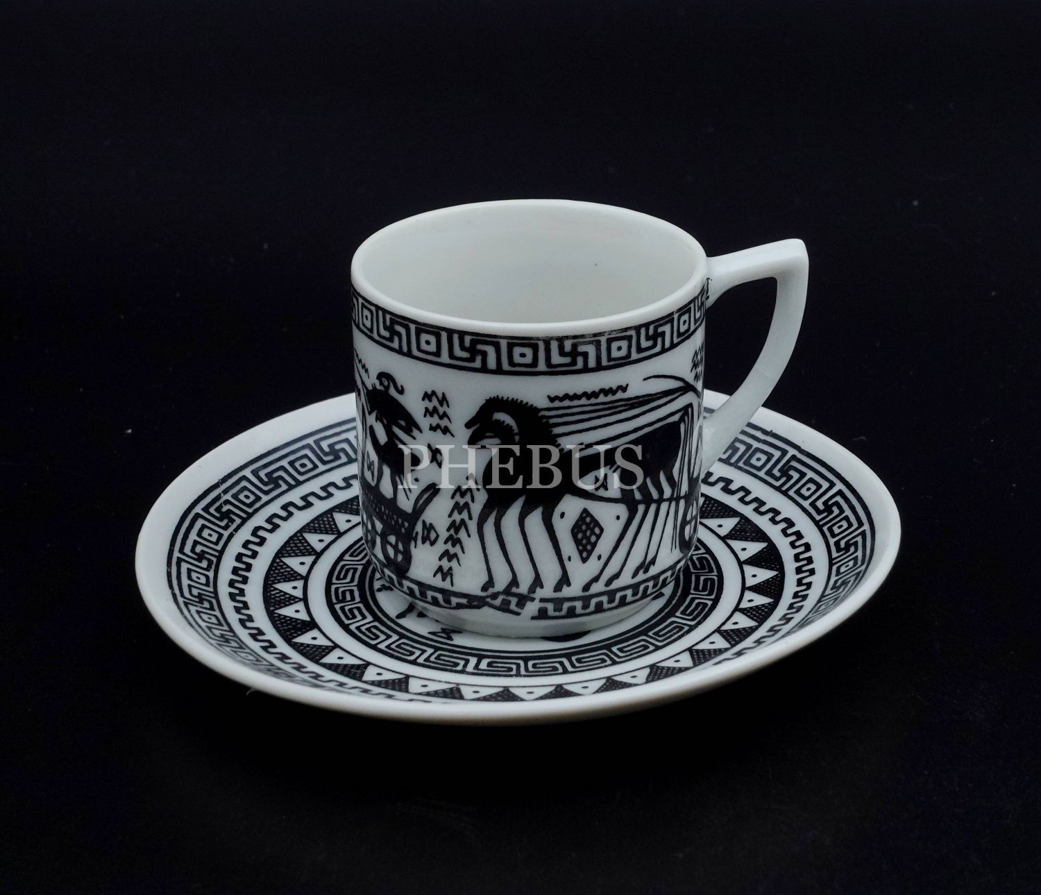 Fincan ve tabağının yüzeyi antik yunan motifleri ile süslenmiştir...