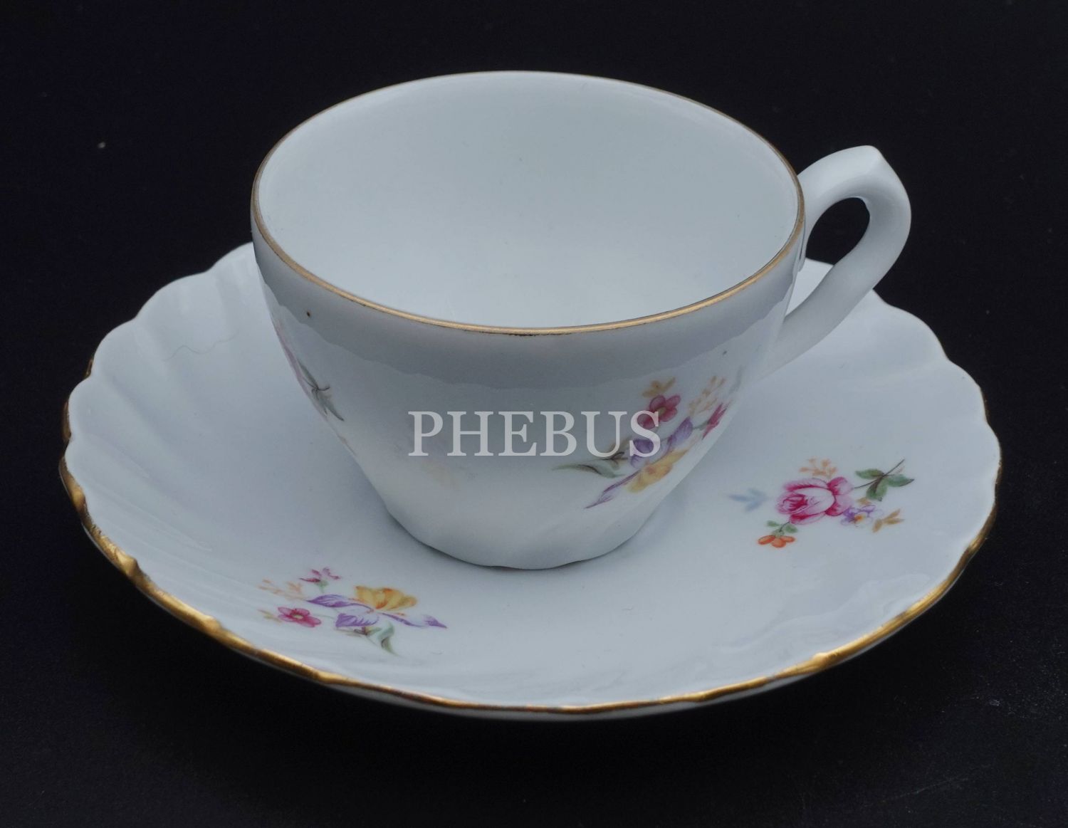 P.M Made In Germany damgalı porselen fincan fincan çapı 6 cm, yüksekliği 4 cm, tabak çapı 11 cm...