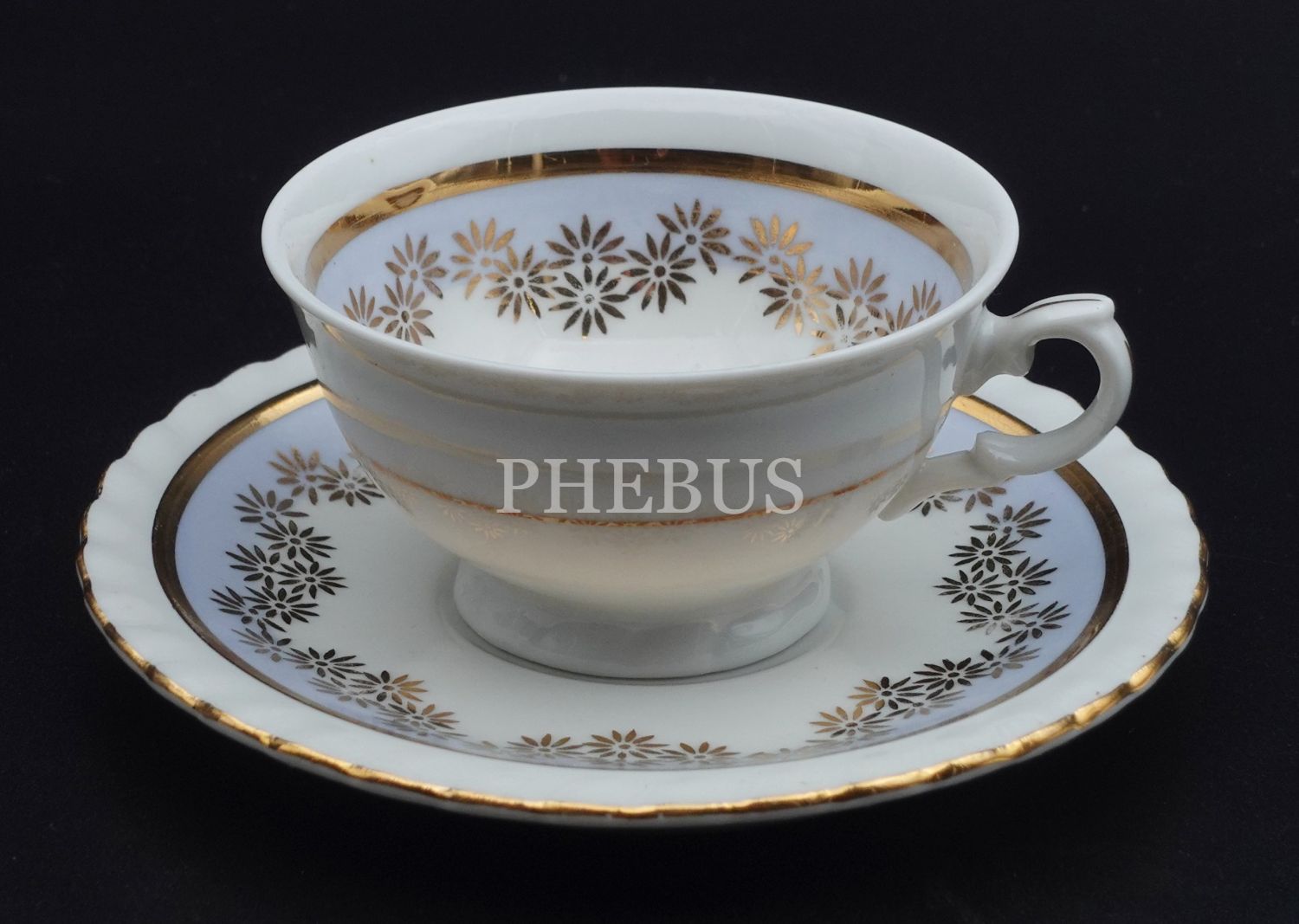 TK Thun Czechoslovakia damgalı pedastral formda porselen fincan, fincan çapı 7 cm, yüksekliği 4 cm, tabak çapı 11 cm...