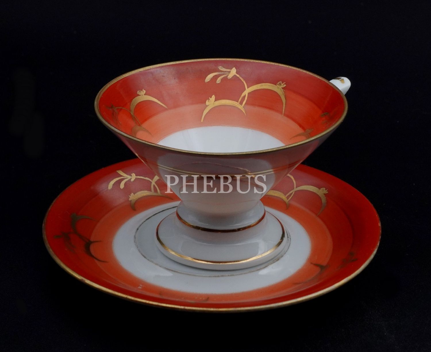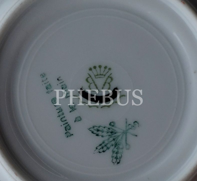 Üretici firma damgalı ´´Painture Faire a La Main´´ yazılı pedastral formda porselen fincan, fincan çapı 8 cm, yüksekliği 5 cm, tabak çapı 11 cm...