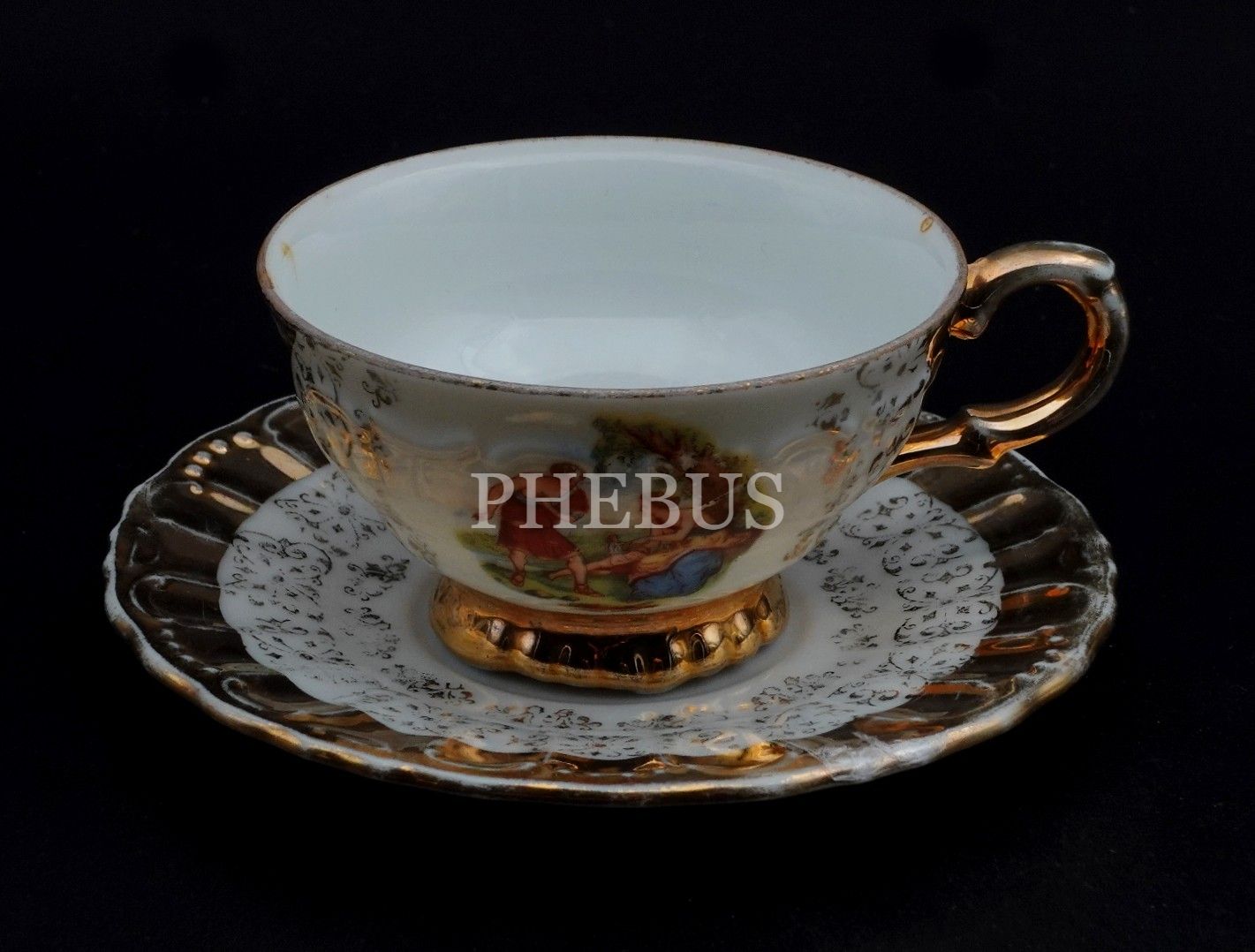 Üretici firma damgalı porselen fincan, fincan çapı 8 cm, yüksekliği 5 cm, tabak çapı 11 cm...