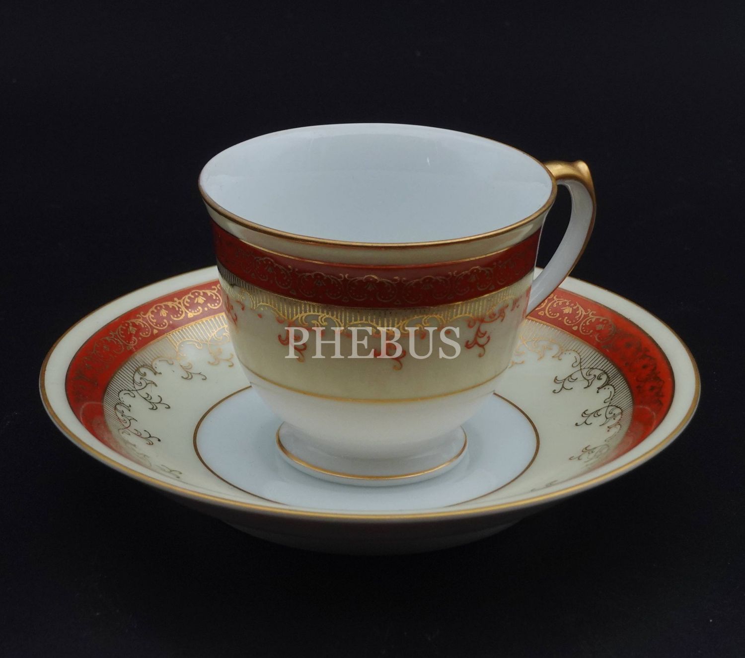 Üretici firma damgalı porselen fincan, fincan çapı 6 cm, yüksekliği 6 cm, tabak çapı 12 cm...