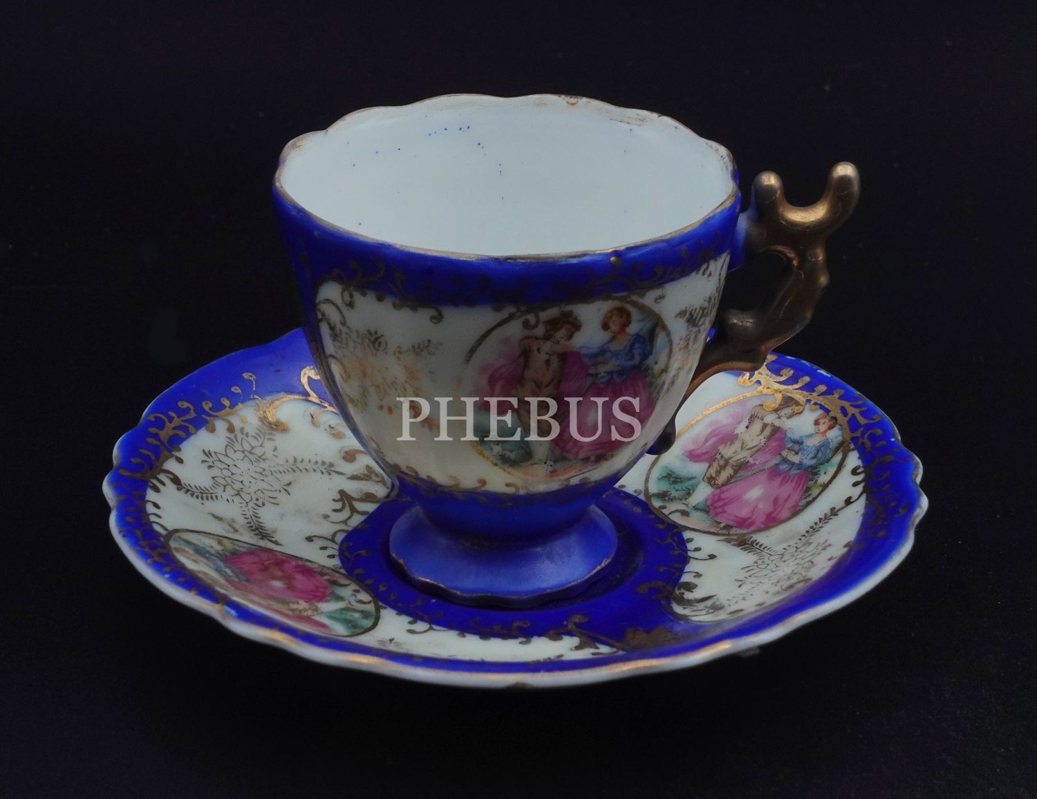 Royal damgalı pedastral formda porselen fincan, fincan çapı 6 cm, fincan yüksekliği 6 cm, tabak çapı 11 cm...