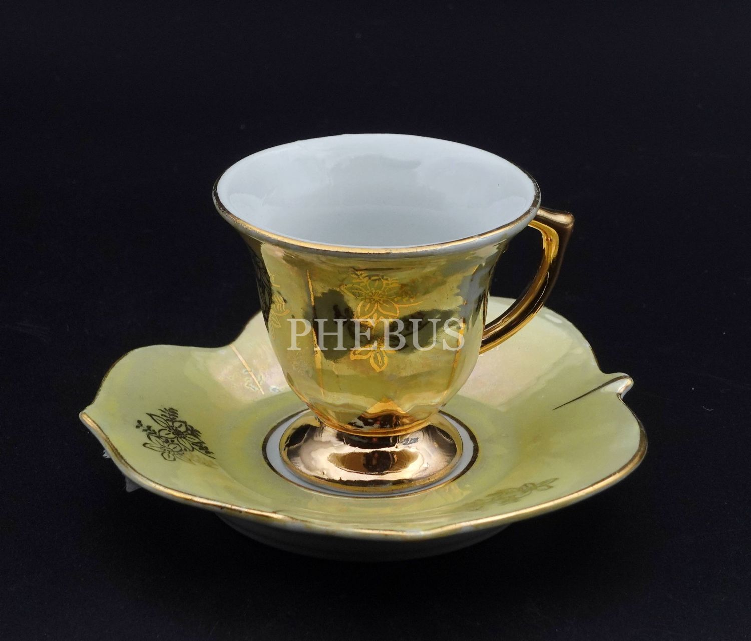 Made In Germany damgalı pedastral formda porselen fincan, fincan çapı 6 cm, yüksekliği 6 cm, tabak çapı 11 cm...