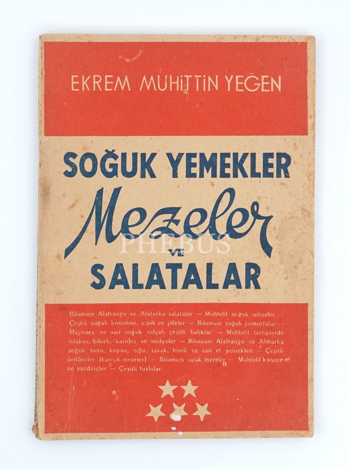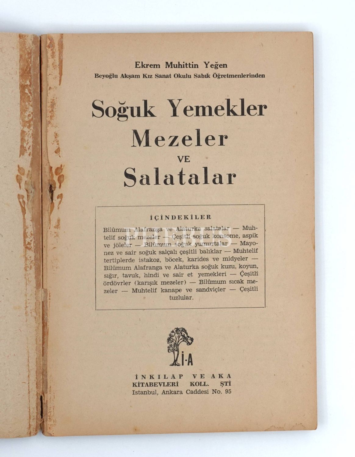 SOĞUK YEMEKLER: MEZELER VE SALATALAR, Ekrem Muhittin Yeğen, 1967, İnkılap ve Aka Kitabevleri Koll. Şti., İstanbul, 144 sayfa, 16x24 cm...