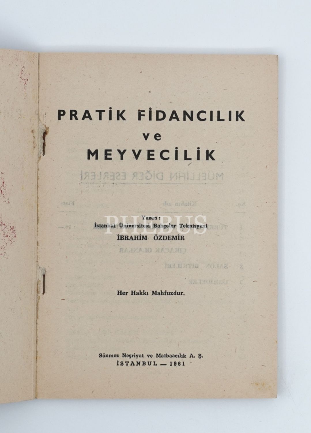 PRATİK FİDANCILIK VE MEYVECİLİK, İbrahim Özdemir, 1961, Sönmez Neşriyat ve Matbaacılık A.Ş., İstanbul, 102 sayfa, 14x20 cm...