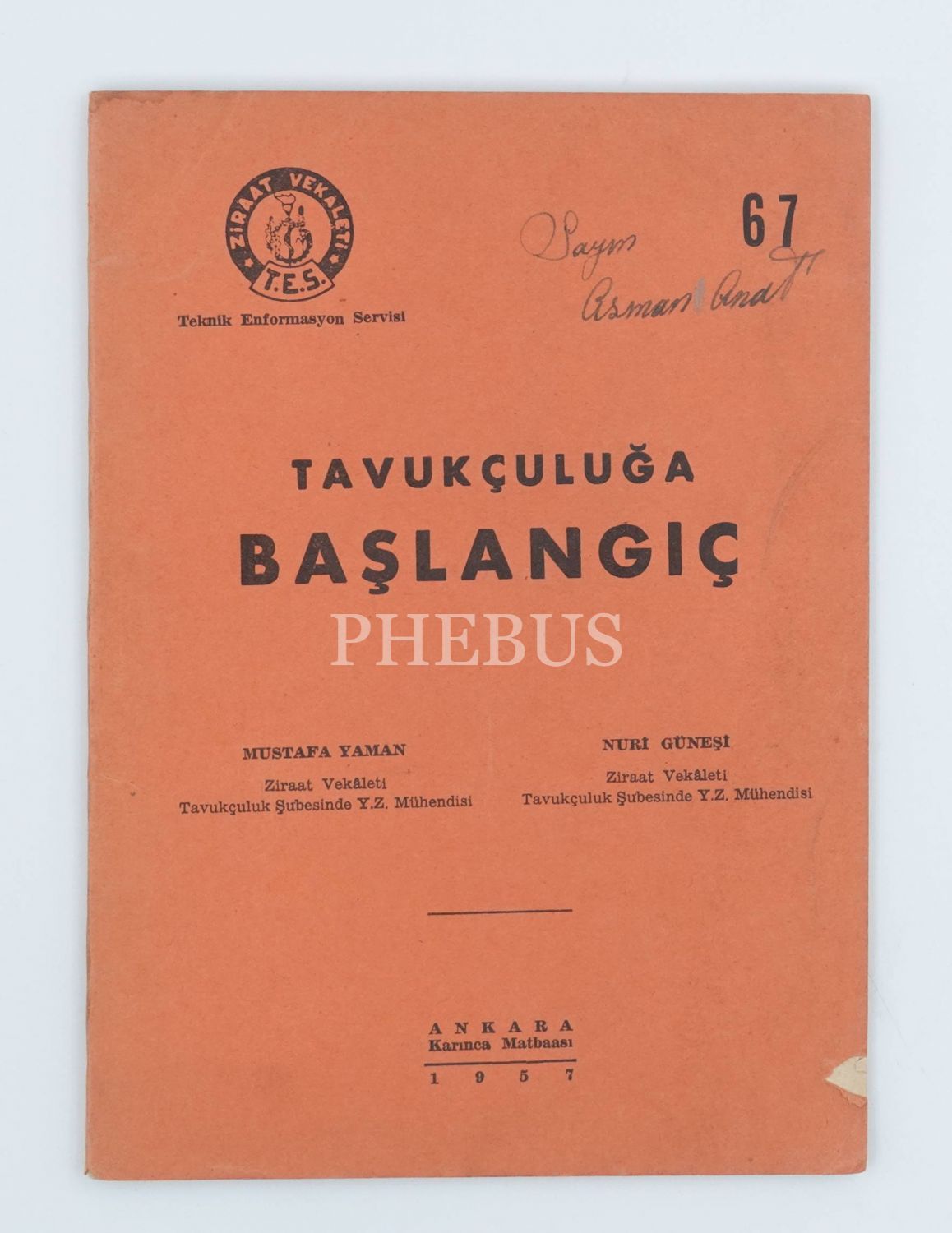 TAVUKÇULUĞA BAŞLANGIÇ (Kuluçka-Civciv-Piliç), Mustafa Yaman & Nuri Güneşi, 1957, Karınca Matbaası, Ankara, 51 sayfa, 15x20 cm...