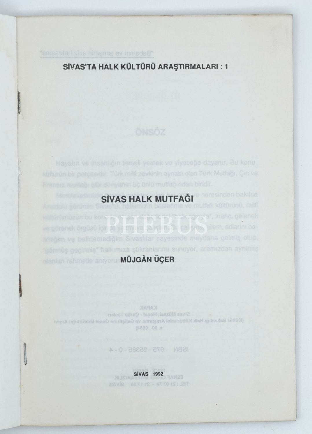 SİVAS HALK MUTFAĞI, Müjgân Üçer, 1992, Esnaf Ofset Matbaacılık, Sivas, 119 sayfa, 17x24 cm...