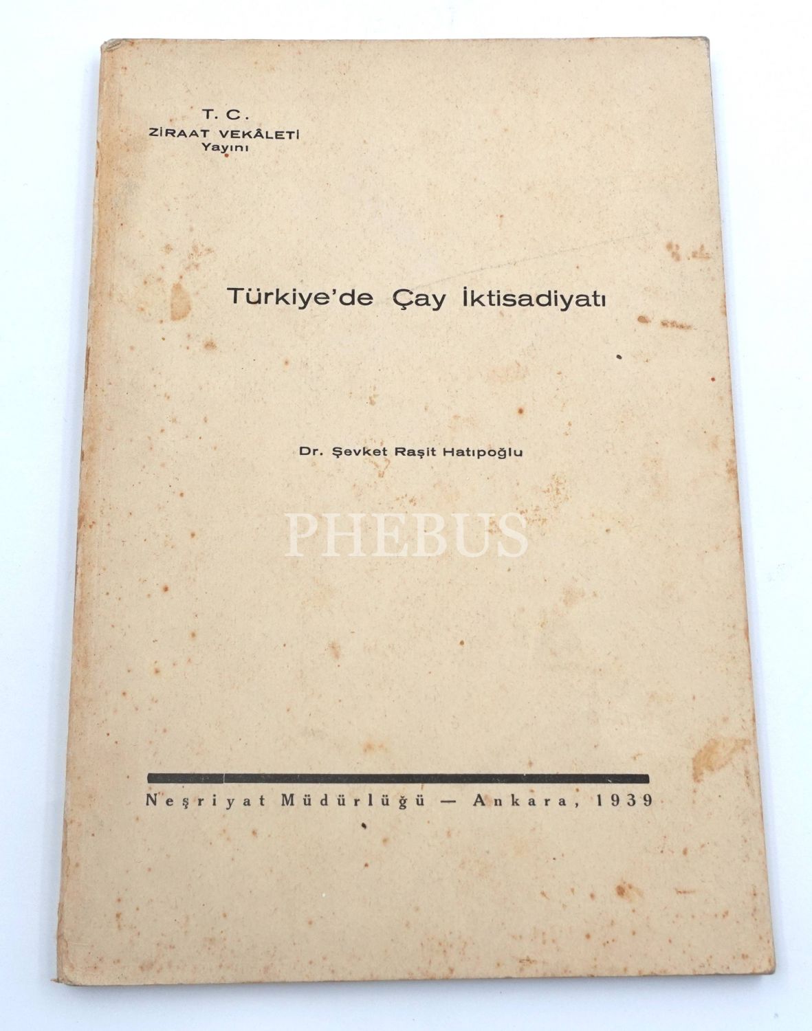 TÜRKİYE´DE ÇAY İKTİSADİYATI, Şevket Raşit Hatipoğlu, 1939, T.C. Zİraat Vekâleti Yayını, Neşriyat Müdürlüğü, Ankara, 135 sayfa, 16x24 cm...