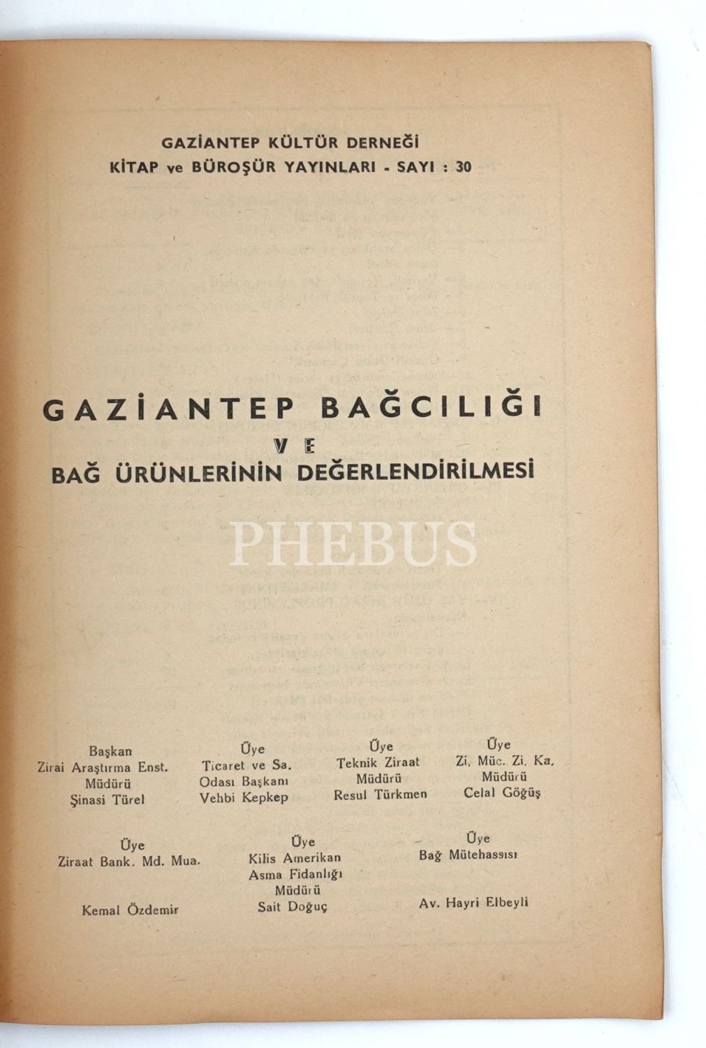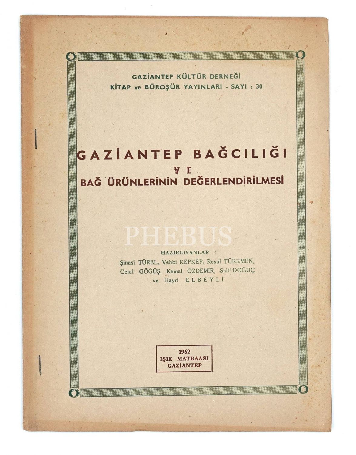 GAZİANTEP BAĞCILIĞI VE BAĞ ÜRÜNLERİNİN DEĞERLENDİRİLMESİ, 1962, Gaziantep Kültür Derneği Kitap ve Büroşür Yayınları - Sayı: 30, Işık Matbaası, Gaziantep, 15 sayfa, 20x28 cm...