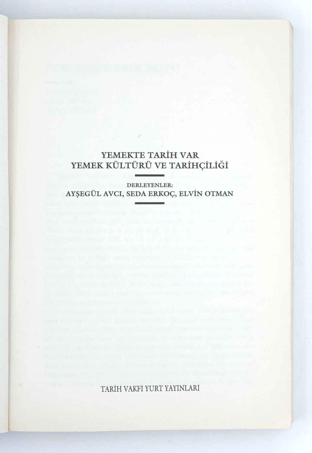 YEMEKTE TARİH VAR (Yemek Kültürü ve Tarihçiliği), hazırlayanlar: Ayşegül Avcı, Seda Erkoç, Elvin Otman, 2012, Tarih Vakfı Yurt Yayınları, 249 sayfa, 16x21 cm...