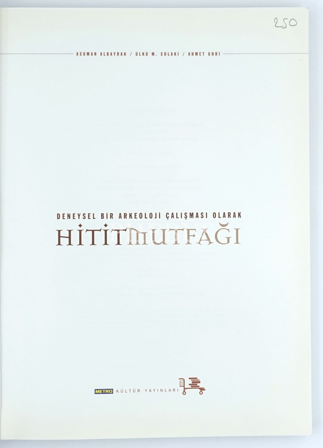 Deneysel Bir Arkeoloji Çalışması Olarak HİTİT MUTFAĞI, editör: A. Nilhan Aras, Mayıs 2008, Metro Kültür Yayınları, 223 sayfa, 21x28 cm...