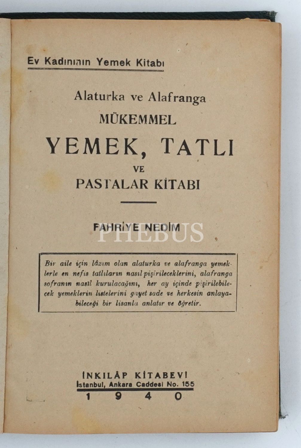 ALATURKA VE ALAFRANGA MÜKEMMEL YEMEK VE TATLI KİTABI, Fahriye Nedim, 1940, İnkılap Kitapevi, 437 sayfa, 14x20 cm...