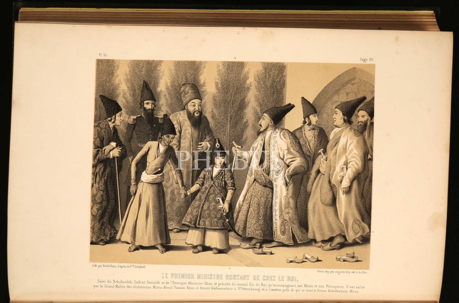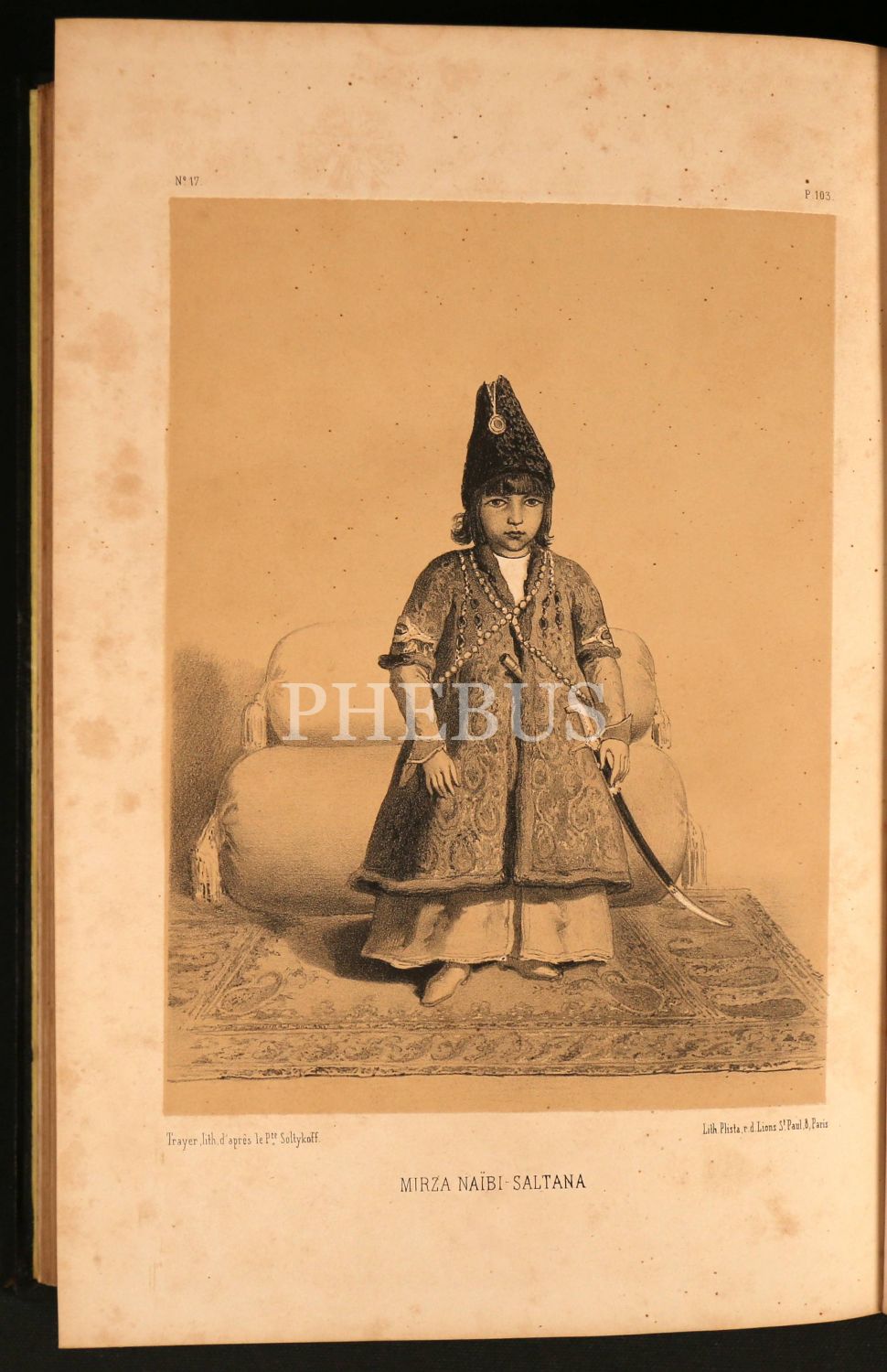 St. Petersburg´u ziyaret eden Pers elçisi Abdül Hasan Han´ın; filler eşliğinde hareket eden heybetli muhafızları, görkemli at arabası ve elmaslarla süslü beyaz kaşmir kumaştan göz kamaştırıcı kostümüyle geçisini seyreden ve bu geçiş merasiminden oldukça etkilenerek Asya´ya, özellikle İran´a gitmek için büyük bir arzu duyan Rus ressam ve gezgin Alexey Saltykov´un (1806–1859) İran seyahatnamesi... Prens Nikolay Saltykov´un torunu olan Alexey´in anlatımına 20 adet çelik baskı gravür eşlik ediyor. Şark usulü tezyinli ve oryantal figürlü, görkemli orijinal cildinde... Sayfa kenarları altın yaldızlıdır.