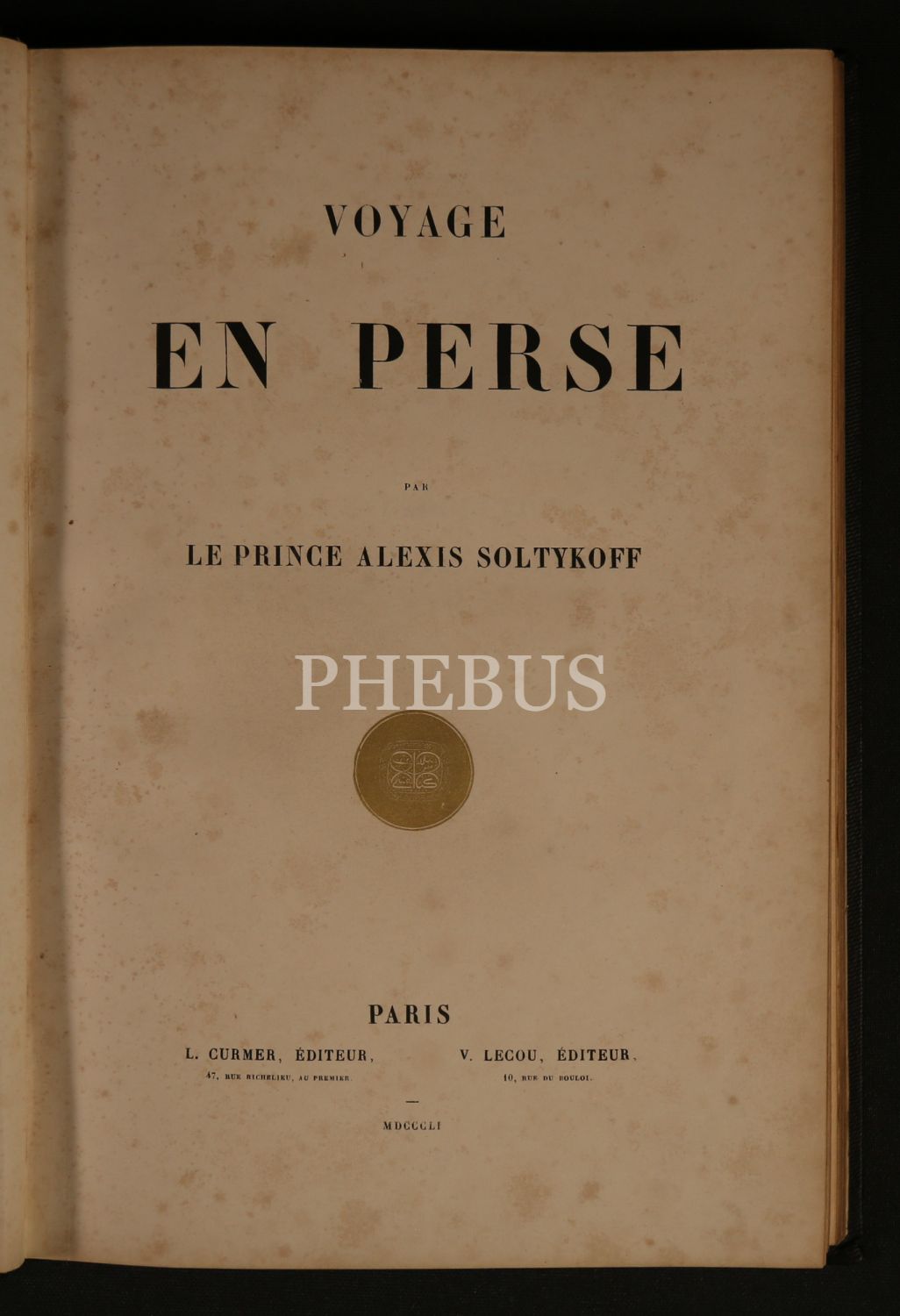 VOYAGE EN PERSE, Le Prince Alexis Soltykoff, L. Curmer & V. Lecou Editour, Paris, 1851, 132 sayfa, 19x28 cm...