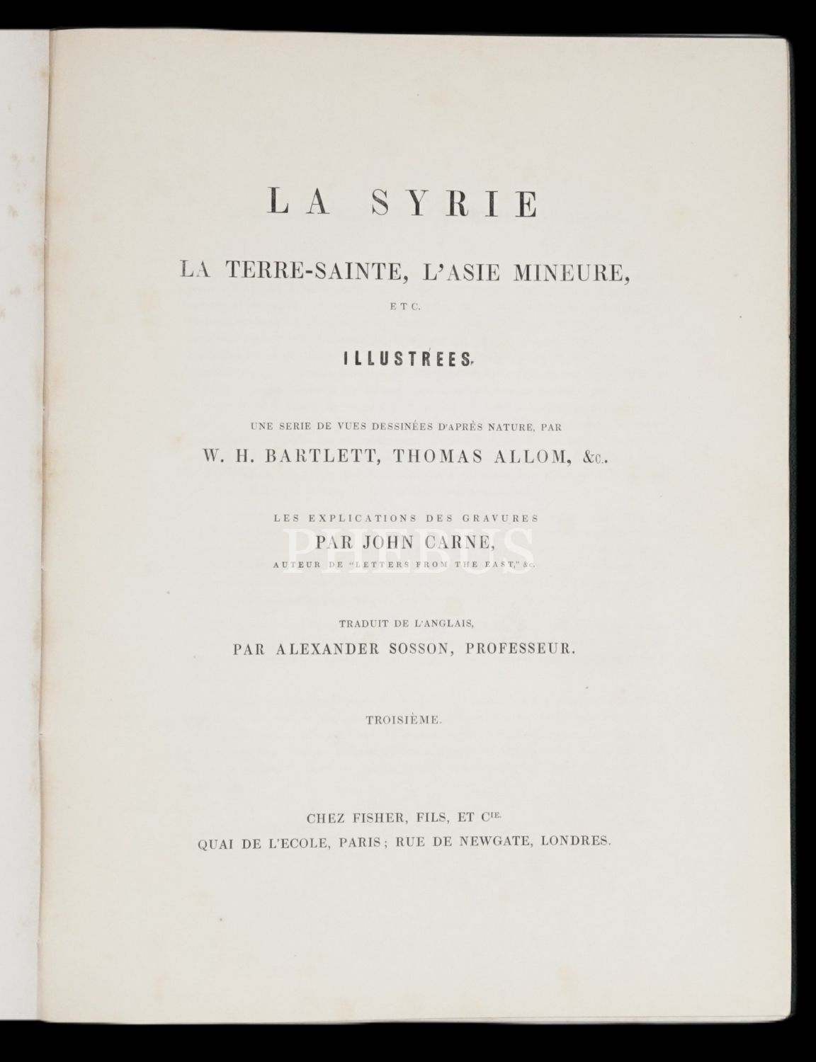 LA SYRIE, LA TERRE-SAINTE, L´ASIE MINEURE, ETC. ILLUSTREES (3 Cilt Takım), gravürler: W. H. Bartlett, William Purser & Thomas Allom, İngilizceden çeviren: Alexandre Sosson, 80+80+100 sayfa, 22x29 cm...