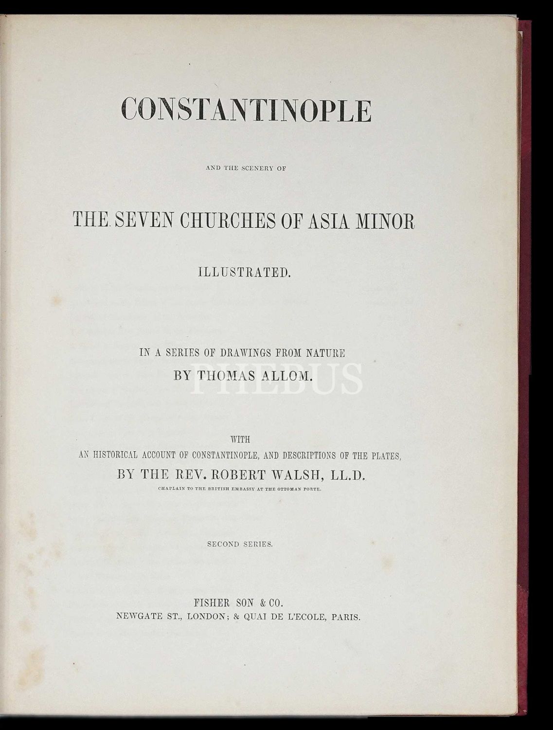 CONSTANTINOPLE AND THE SCENERY OF THE SEVEN CHURCHES OF ASIA MINOR (İstanbul ve Küçük Asya´nın Yedi Kilisesinin Manzarası), Robert Walsh & Thomas Allom, 1838, Fisher, Son, & Co. Paris, 84+100 sayfa, 23x30 cm...