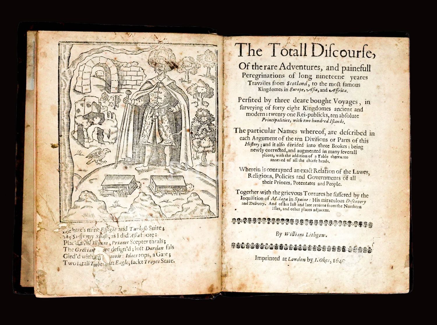 THE TOTALL DISCOURSE, William Lithgow, 1640, London, 514 sayfa, 15x20 cm...