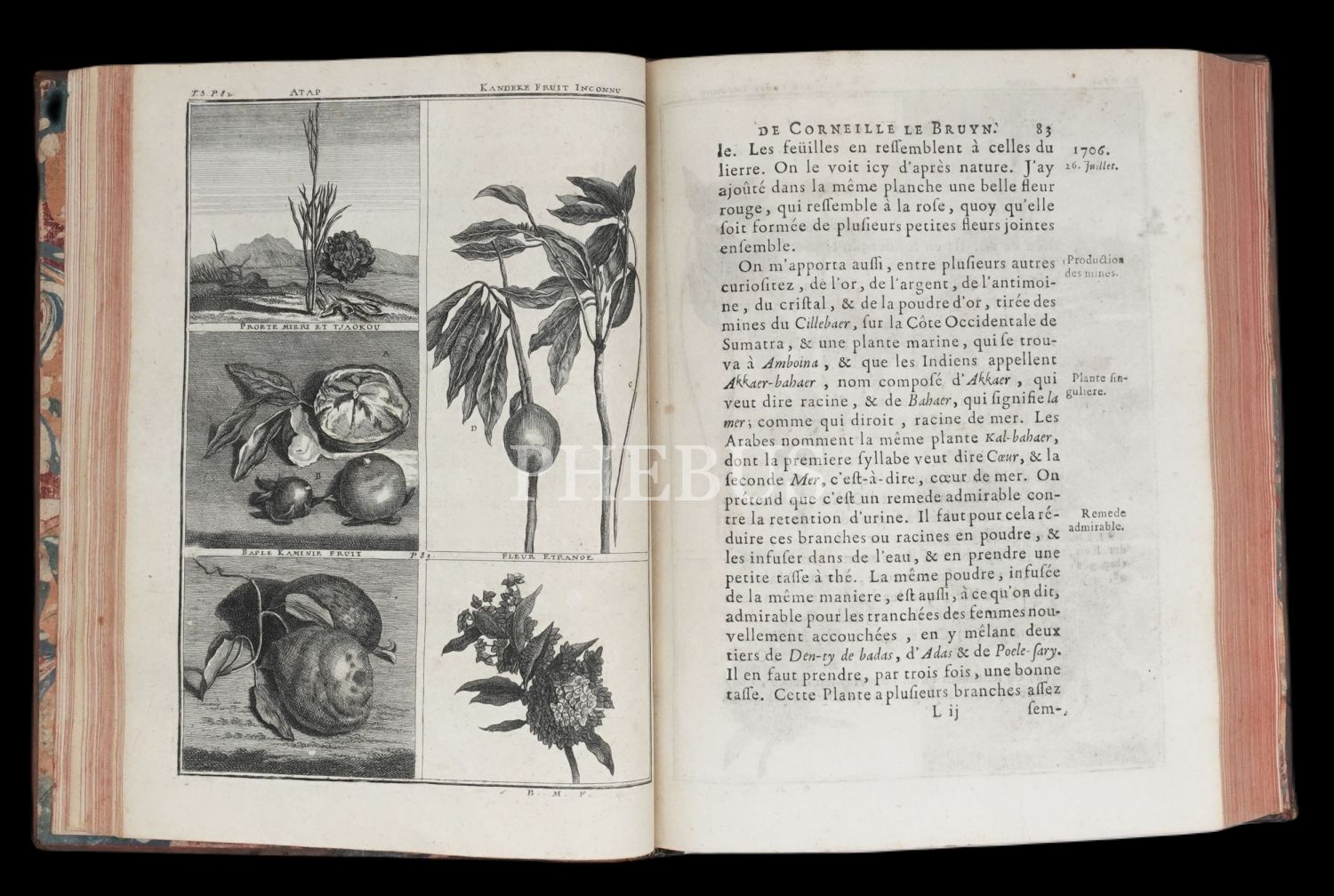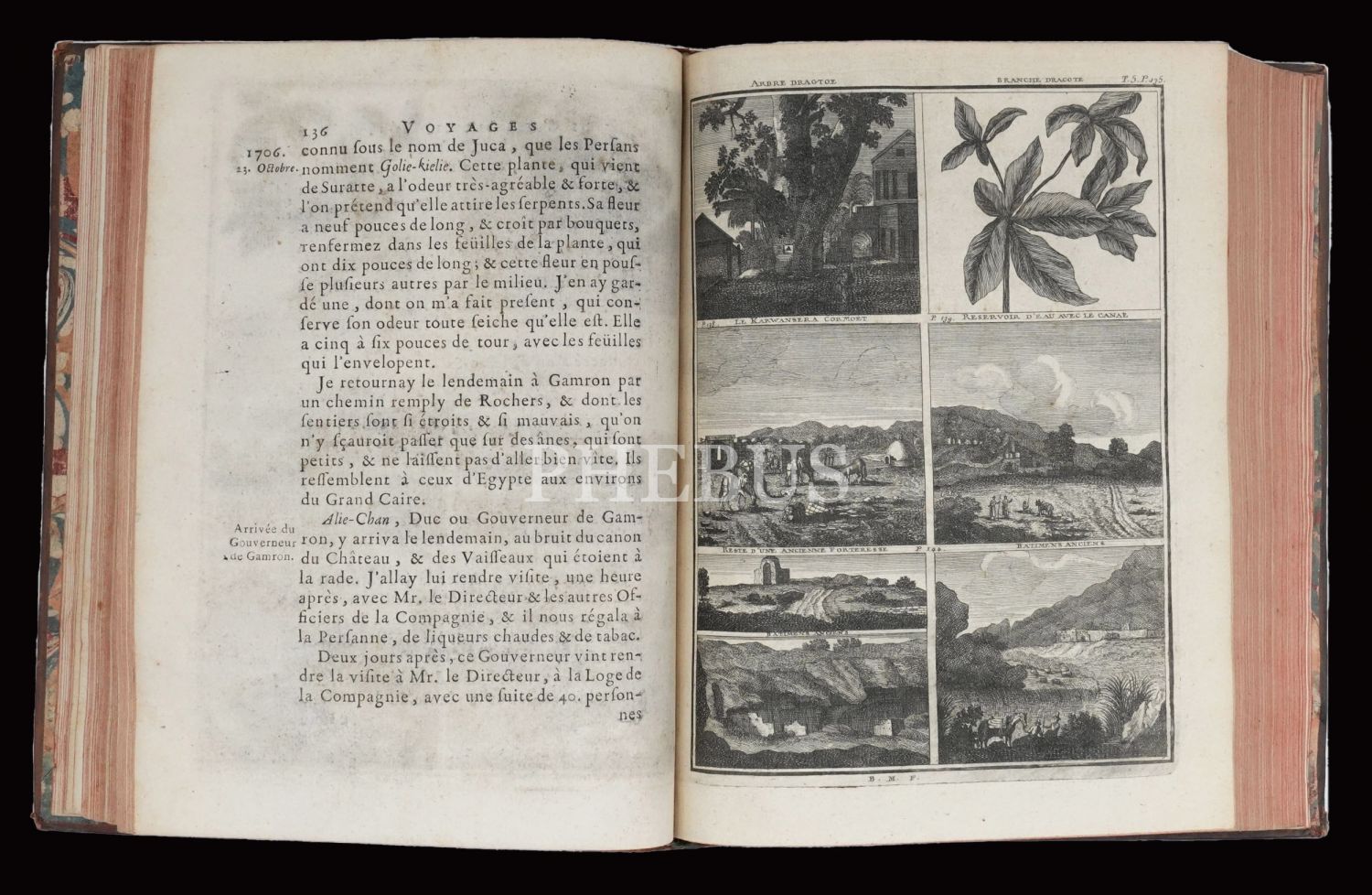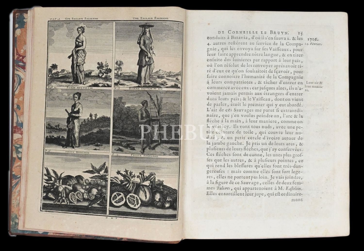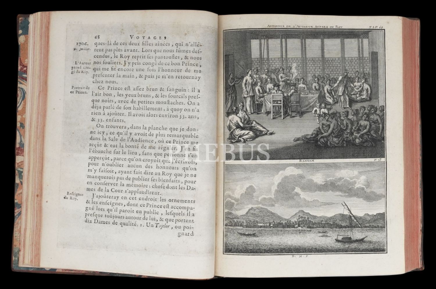 Hollandalı gezgin Cornelis de Bruyn´un (1652-1727), 1678 yılında çıktığı ve 1684 yılında tamamladığı Osmanlı İmparatorluğu ve çevresini kapsayan 6 yıllık İstanbul, Küçük Asya, Kariye, Rodos, Mısır, Suriye ve Kutsal Topraklar seyahati gözlemlerini, harikulade gravürlerle yansıtan meşhur seyahatnamesi... Döneminin, iç kapakları ebrulu, tümüyle deri ciltleri içinde... Sayfa kenarları kırmızı boyalıdır.