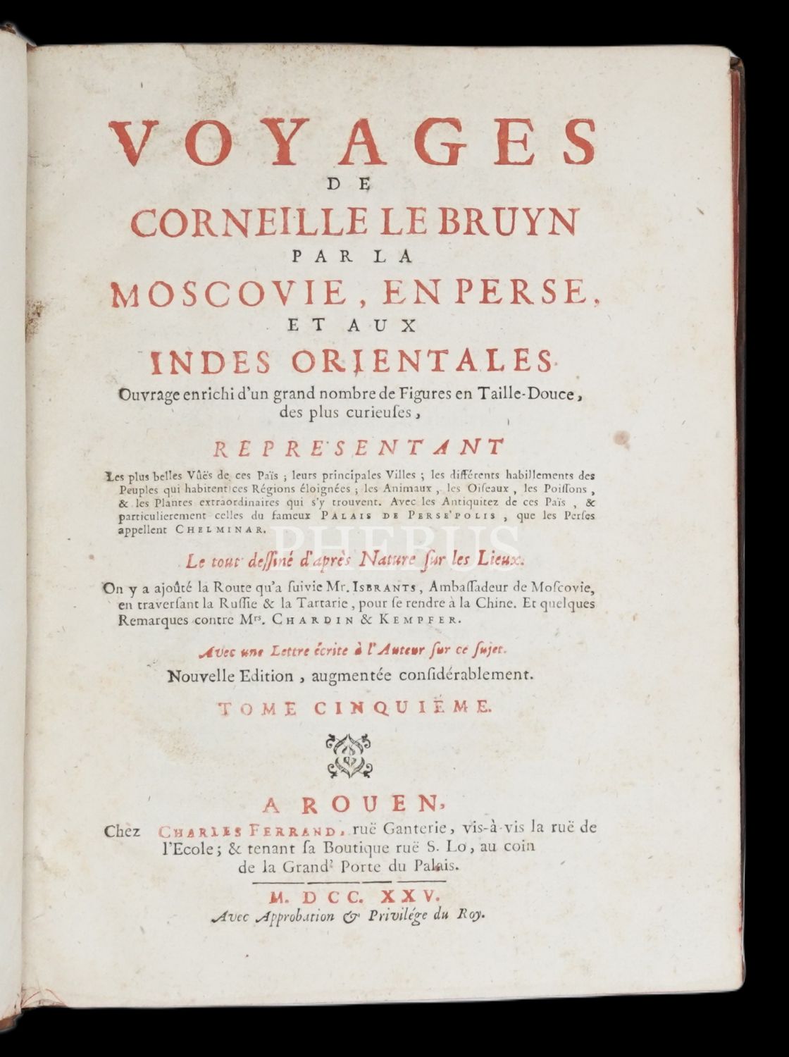 VOYAGE AU LEVANT (5 Cilt Takım), Corneille Le Bruyn, 1725, Chez Charies Ferrand, A Rouen, 648+565+520+498 sayfa, 20x26 cm...
