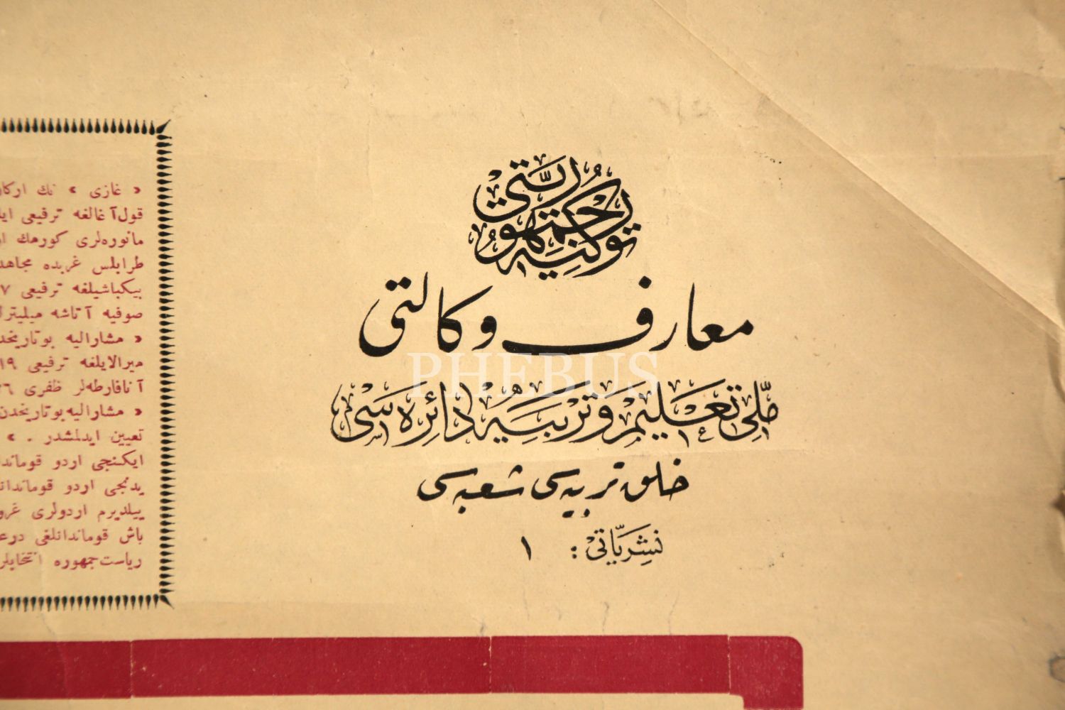 Maarif Vekaleti, Cumhuriyet sonrasında okullarda kullanılmak üzere, Cumhuriyet'in değerlerine yönelik yeni afişler hazırlanması için çalışmalar başlattı. Müzayedemizde sunduğumuz afiş, bu amaçla üretilen "1 numaralı" afiş olma özelliği taşıyor.