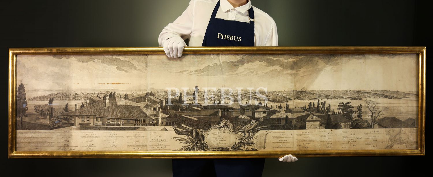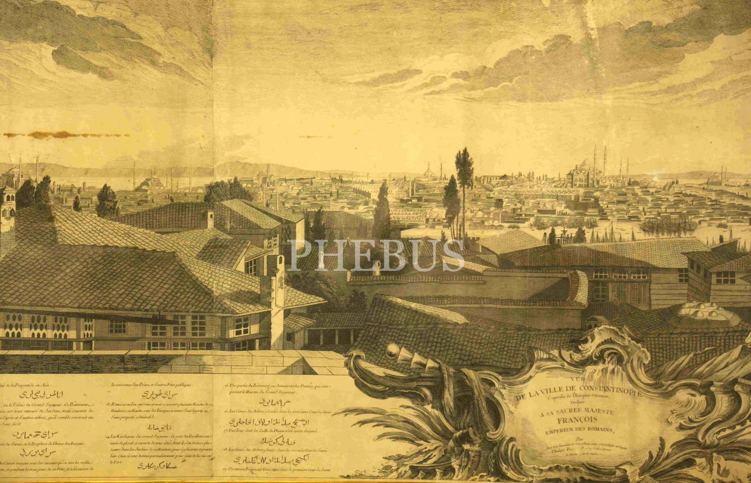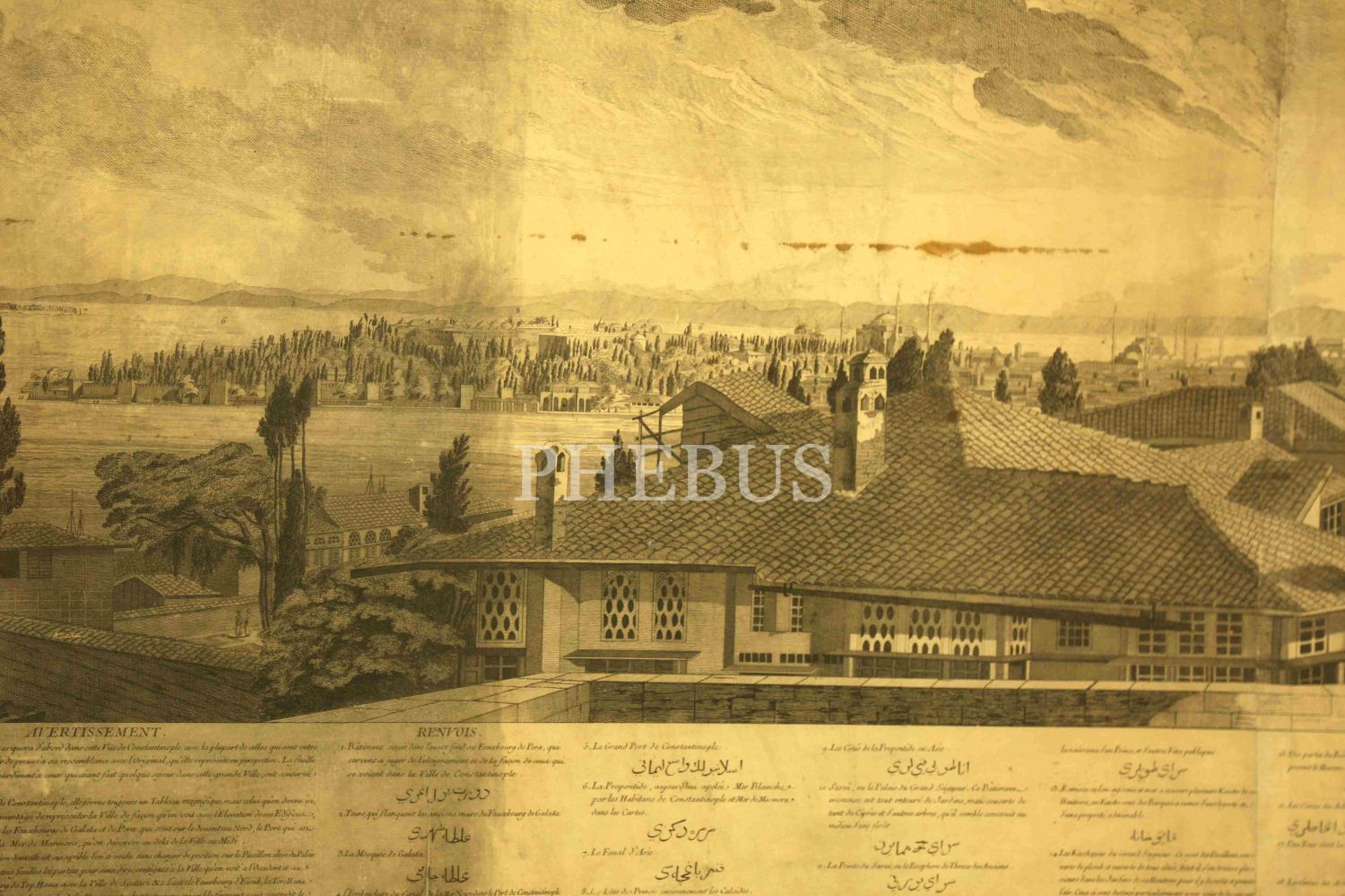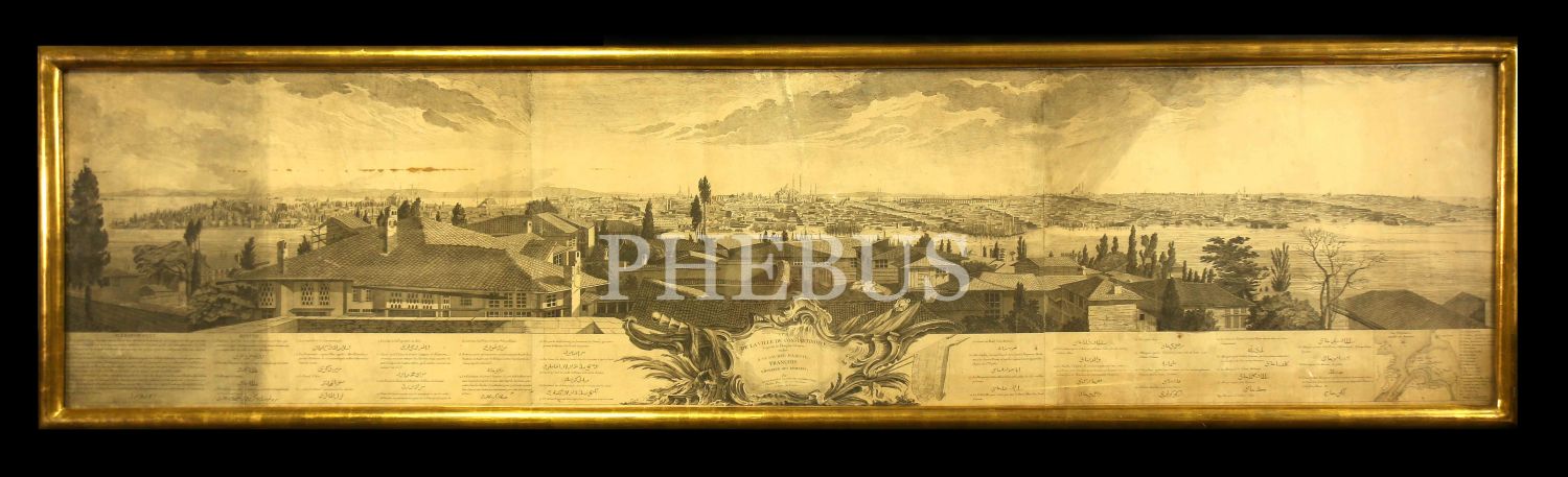 Sarayburnu´ndan Haliç´e uzanan 180 derecelik bir İstanbul panoraması, "Vue de la ville de Constantinople capitale de l´Empire Ottoman", Phillipe Francois Baron de Gudenus, çerçevesiyle birlikte 193x50 cm...