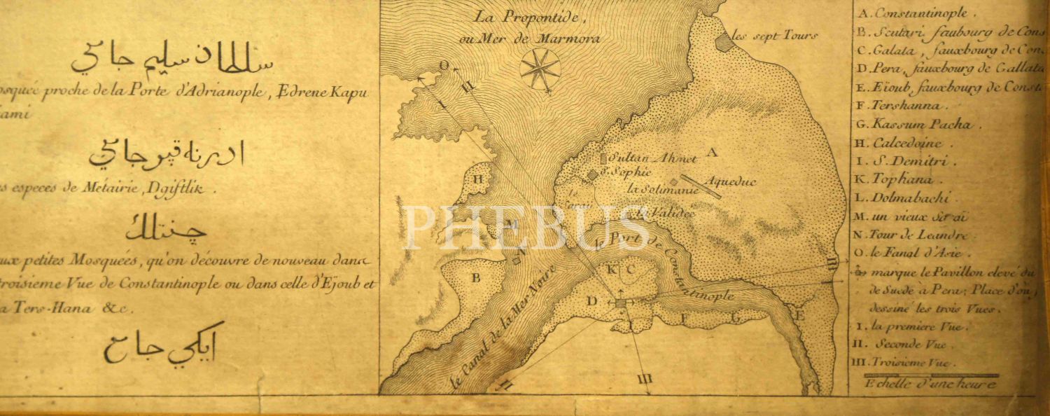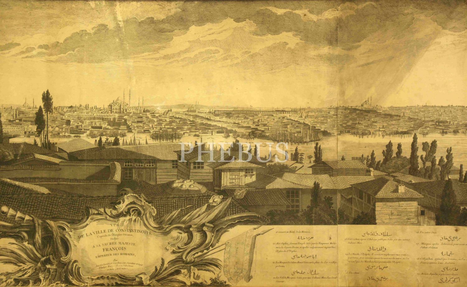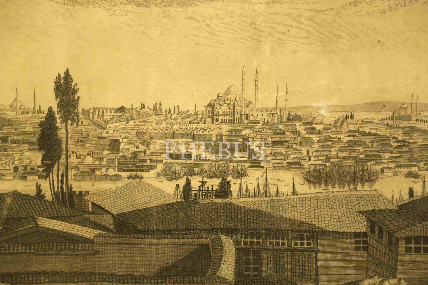 Sarayburnu´ndan Haliç´e uzanan 180 derecelik bir İstanbul panoraması, "Vue de la ville de Constantinople capitale de l´Empire Ottoman", Phillipe Francois Baron de Gudenus, çerçevesiyle birlikte 193x50 cm...