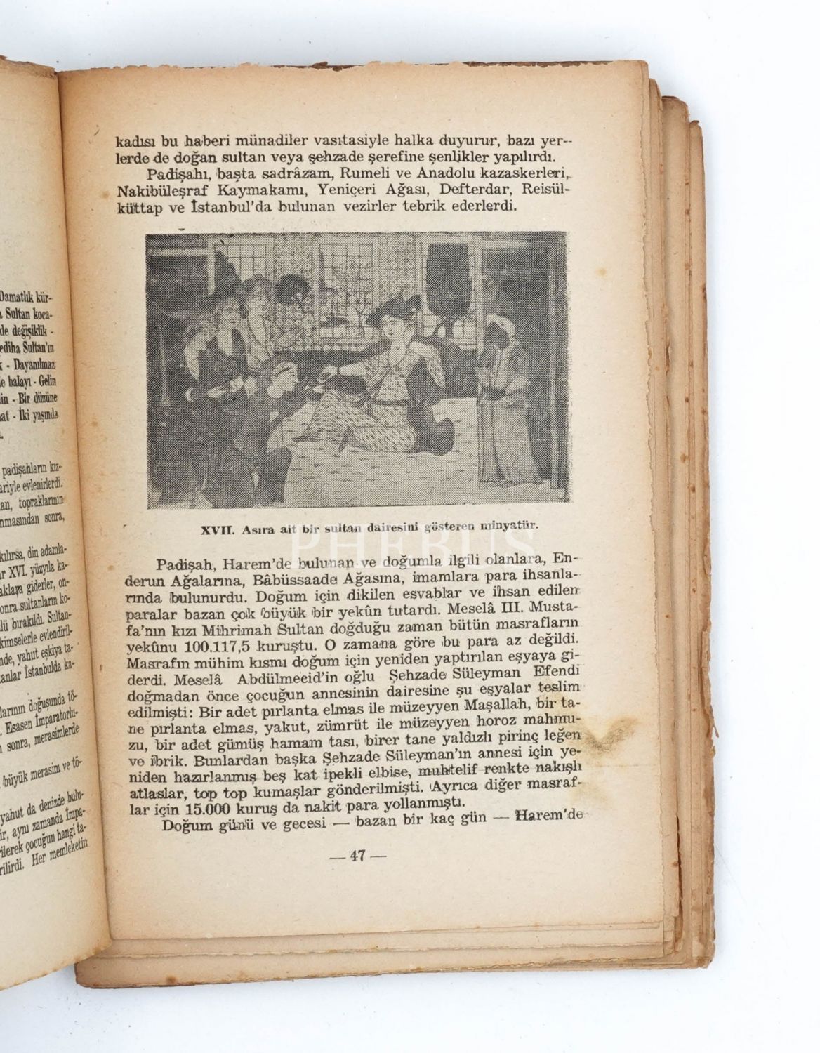 "Osmanlı Saraylarında Harem Hayatının İç Yüzü, ilk def`a Hayat Mecmuasında yayınlandı. Senelerdenberi üzerinde çalışmakta olduğum bu konu üzerinde popüler bir eser meydana getirmeme, Hayat Mecmuasının sahibi Şevket Rado sebep oldu..." (Önsözden). *Formalar sırttan ve birbirinden ayrılmış, bazı sayfaların kenarları formalar açılırken metne zarar vermeyecek şekilde yırtılmıştır.