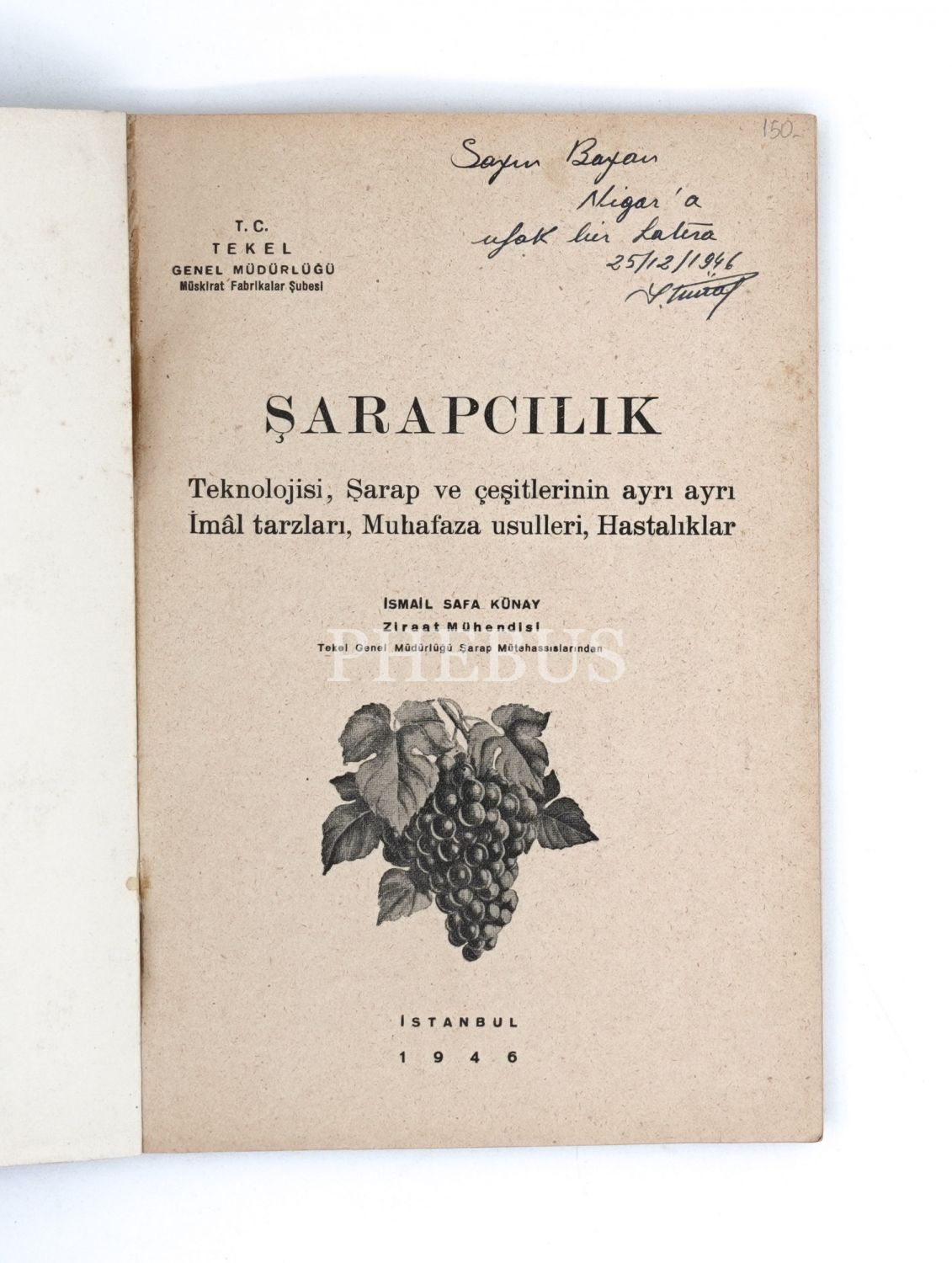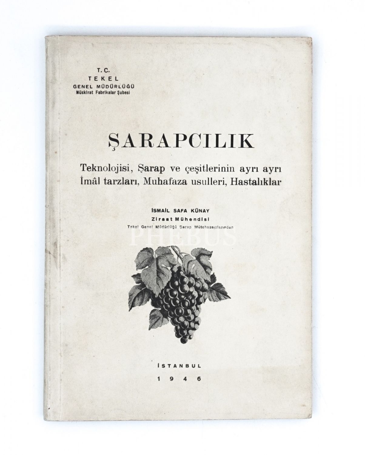 ŞARAPCILIK, İsmail Safa Künay, 1946, T. C. Tekel Genel Müdürlüğü Müskirat Fabrikalar Şubesi, İstanbul, 172 sayfa, 16x24 cm…
