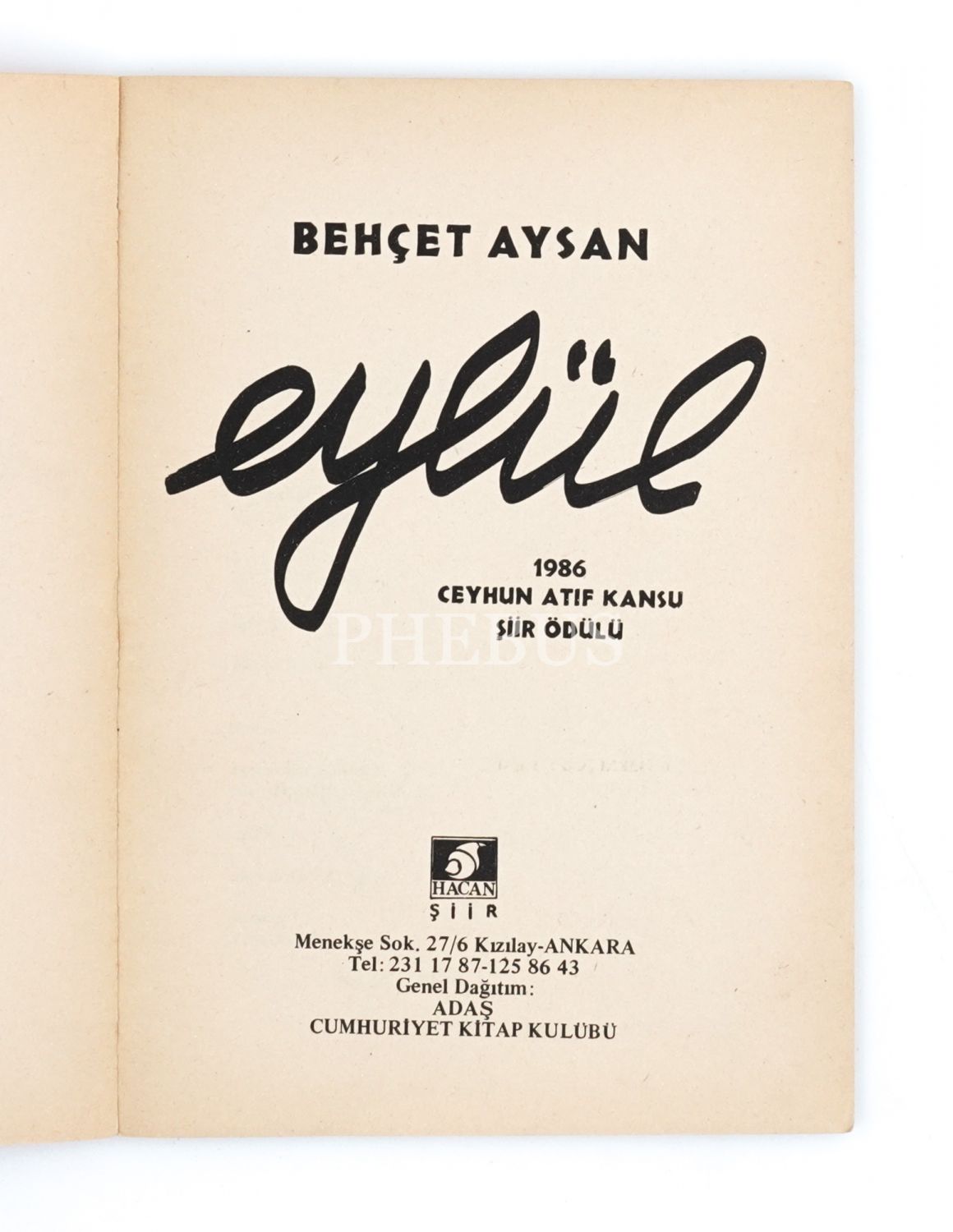 EYLÜL, Behçet Aysan, 1988, Hacan Yayınları, 80 sayfa, 13x19 cm…